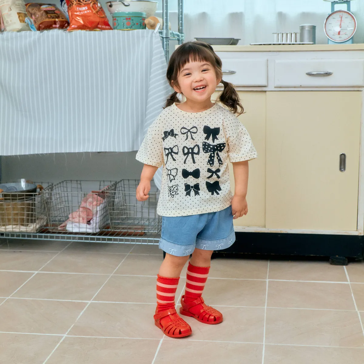 1stBlue 蝴蝶結印花短袖T恤