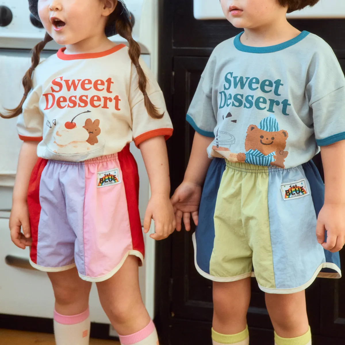1stBlue 色塊拼接短褲