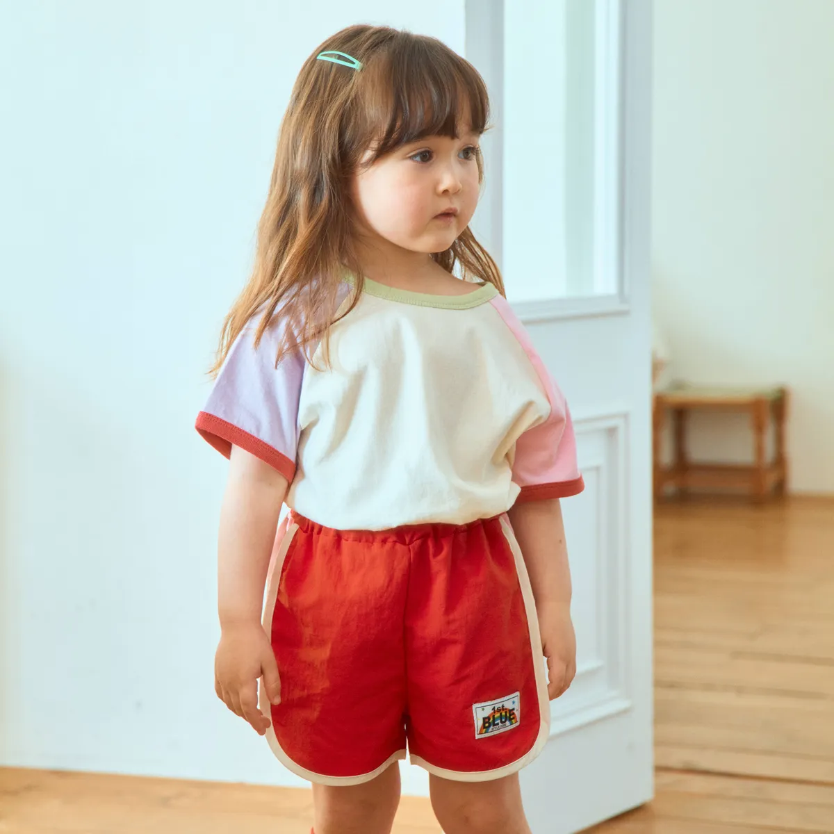 1stBlue 白色滾邊撞色短褲