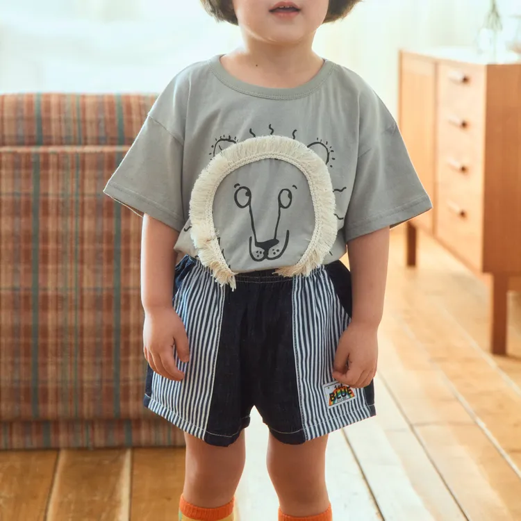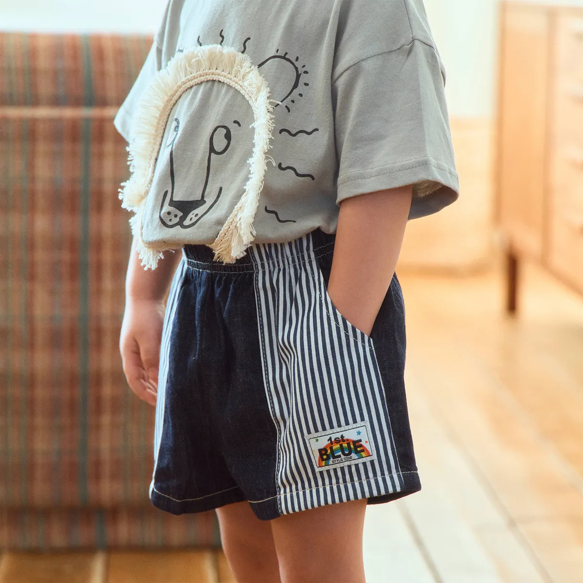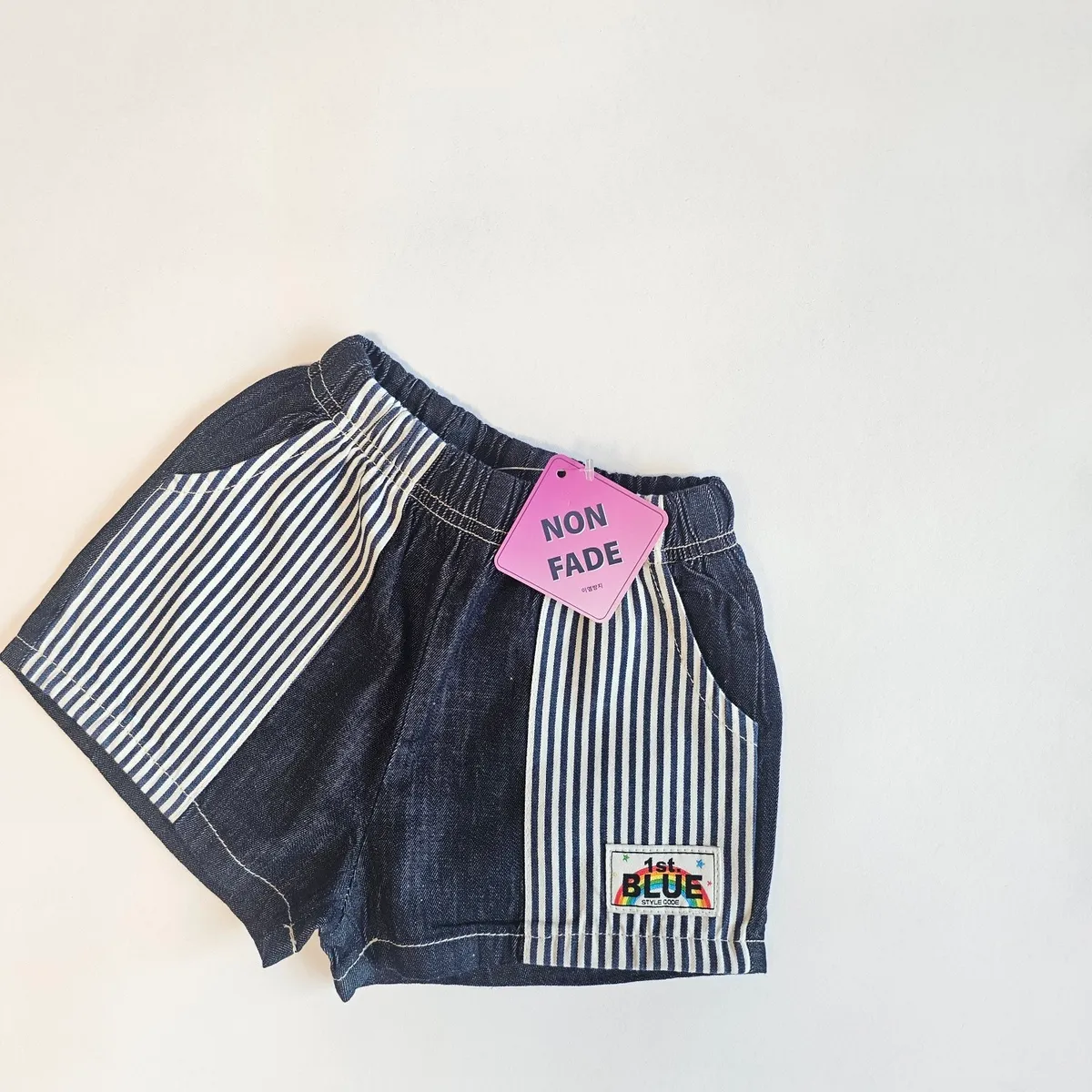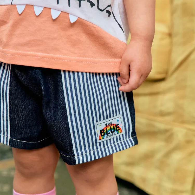 1stBlue 復古直條口袋牛仔短褲