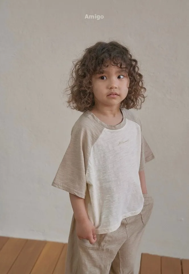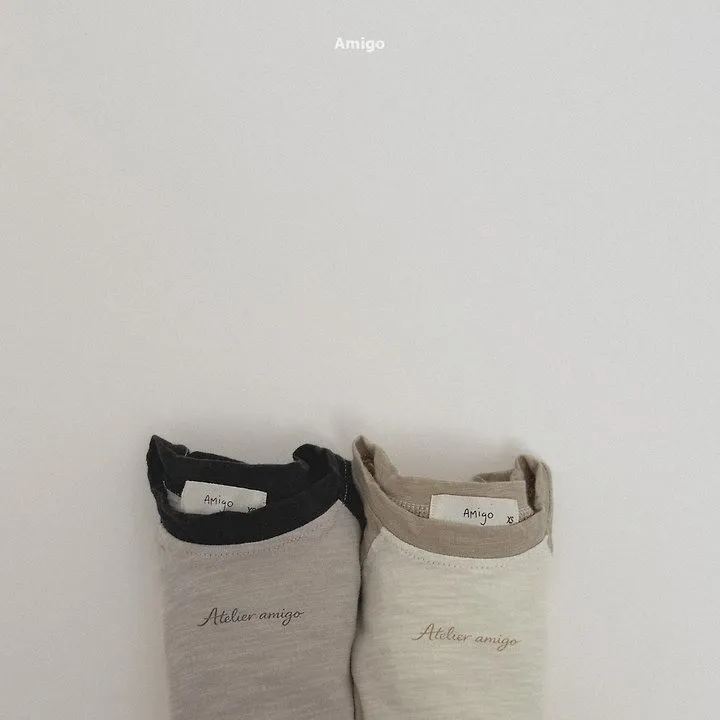Amigo 竹節棉配色落肩袖上衣