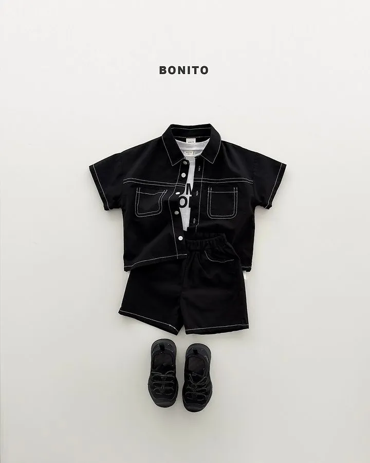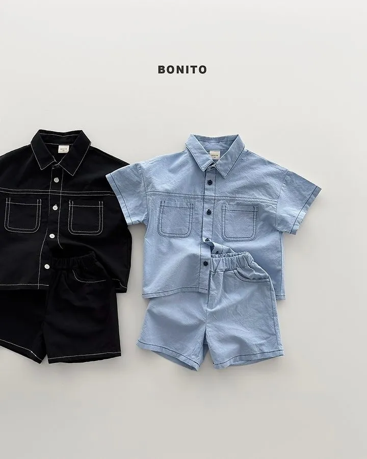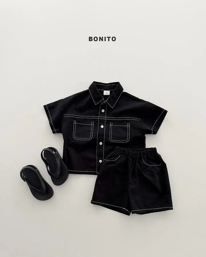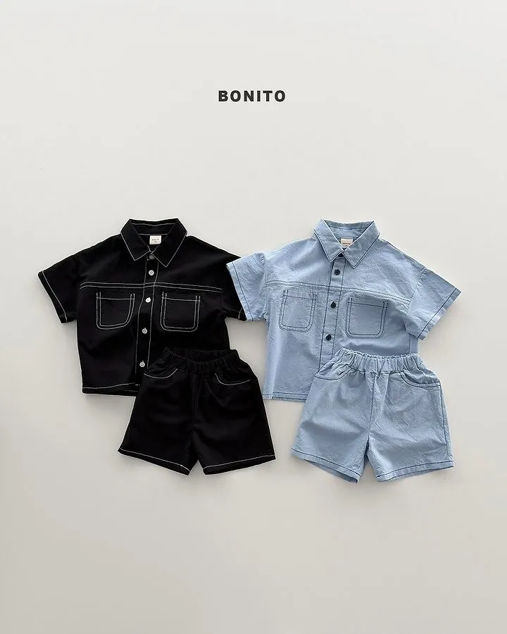 Bonito 雙口袋撞色線亞麻套裝
