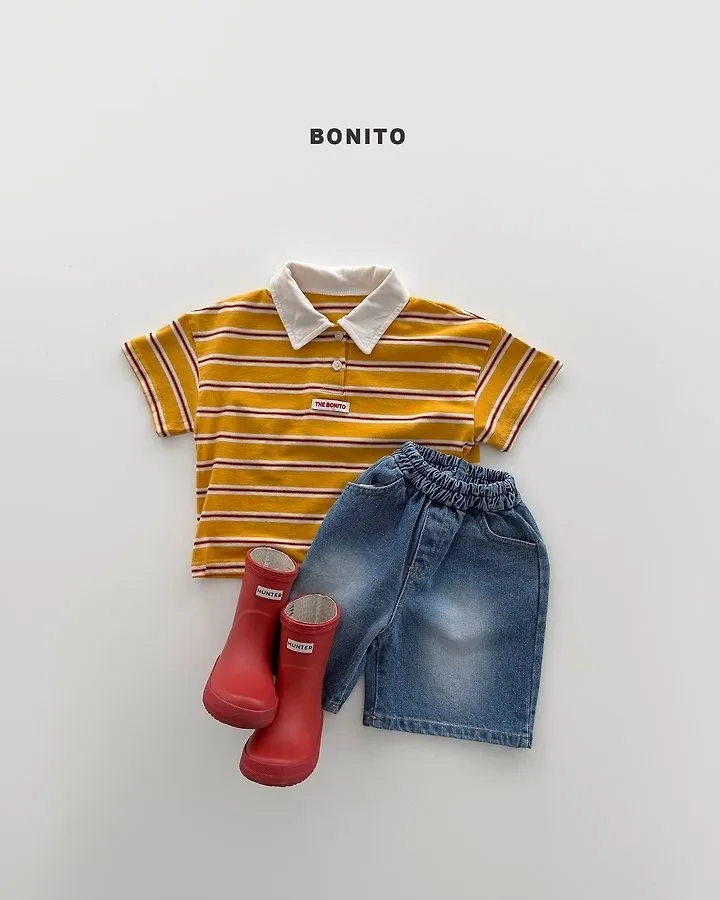 Bonito 橫條紋翻領T