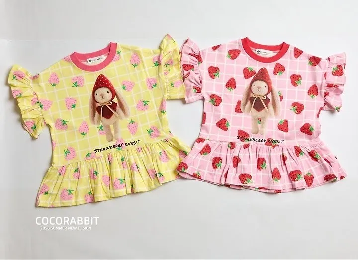 Cocorabbit 格紋草莓兔子娃娃迷你洋裝