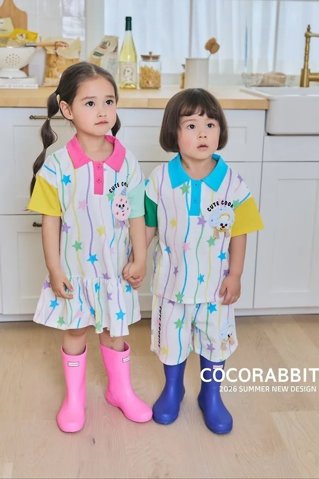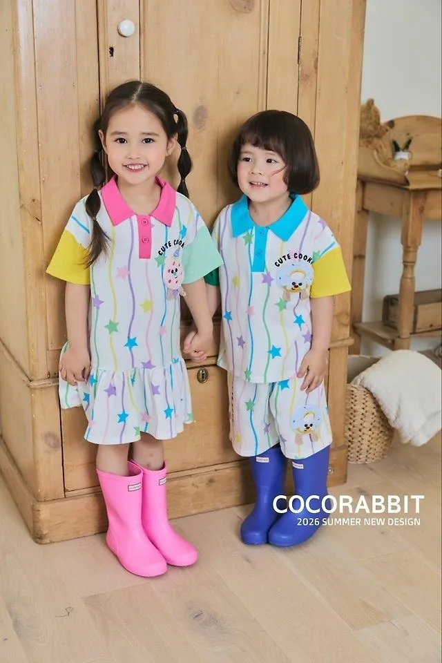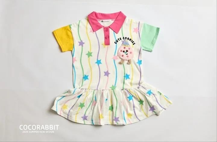 Cocorabbit 翻領直條星星撞色袖洋裝
