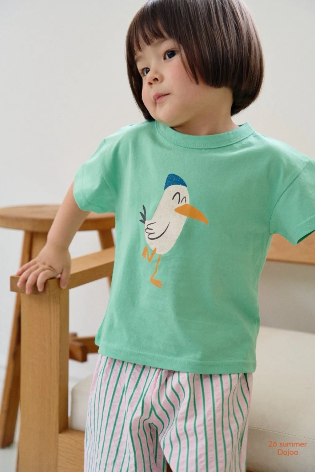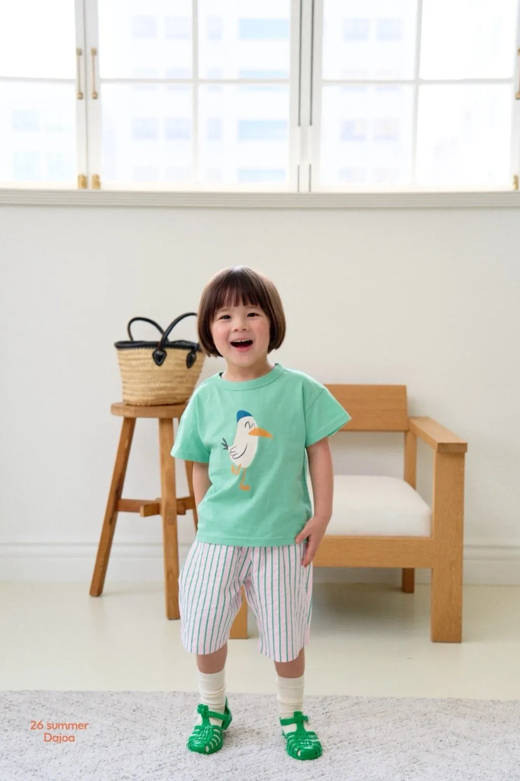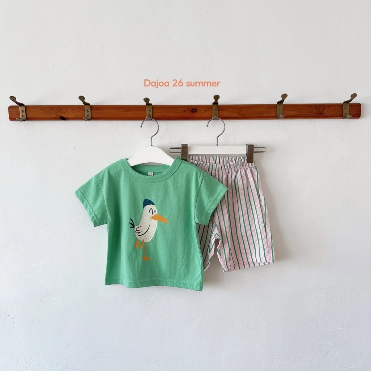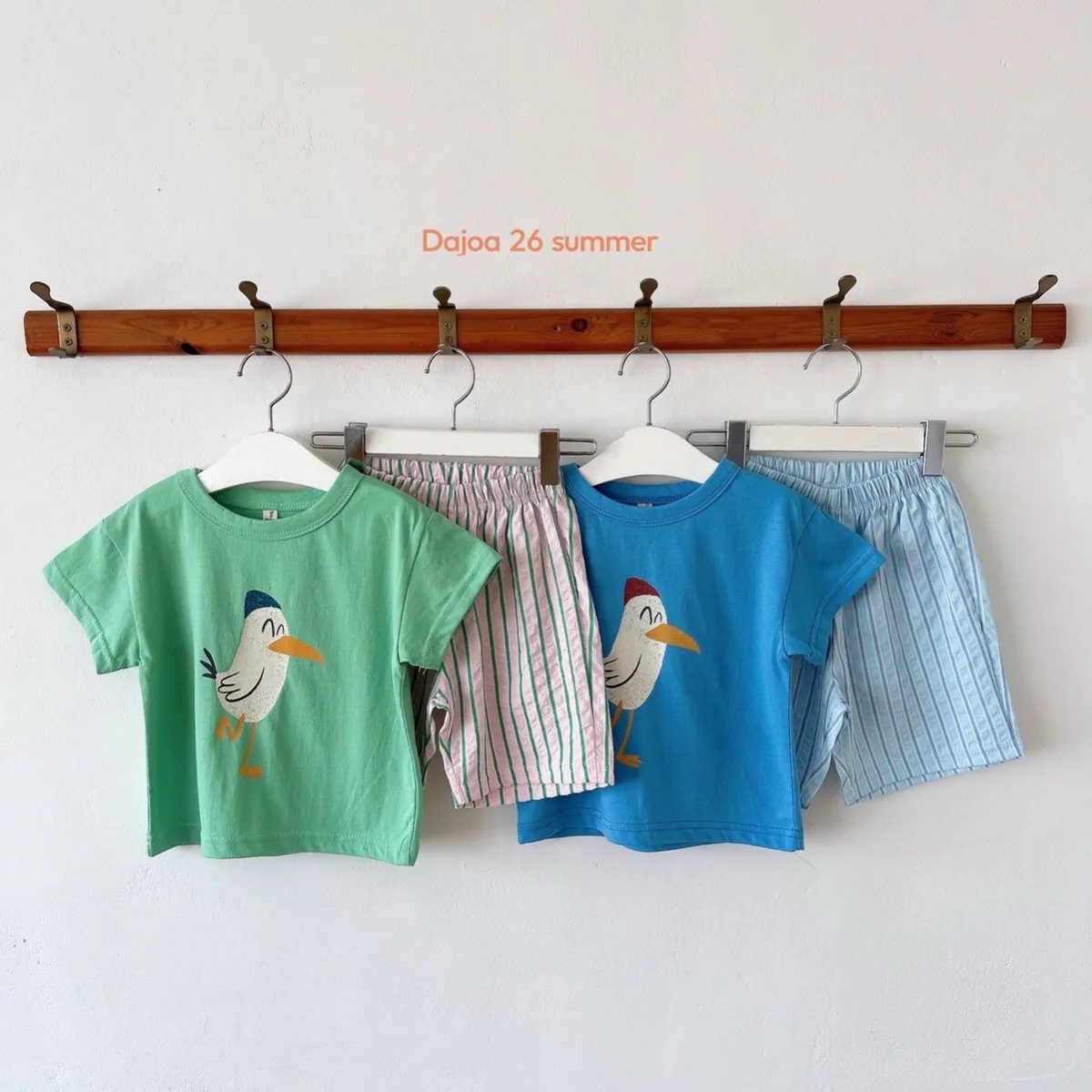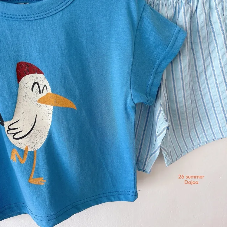 Dajoa 小白鳥直條短褲套裝 共2色(藍/綠)