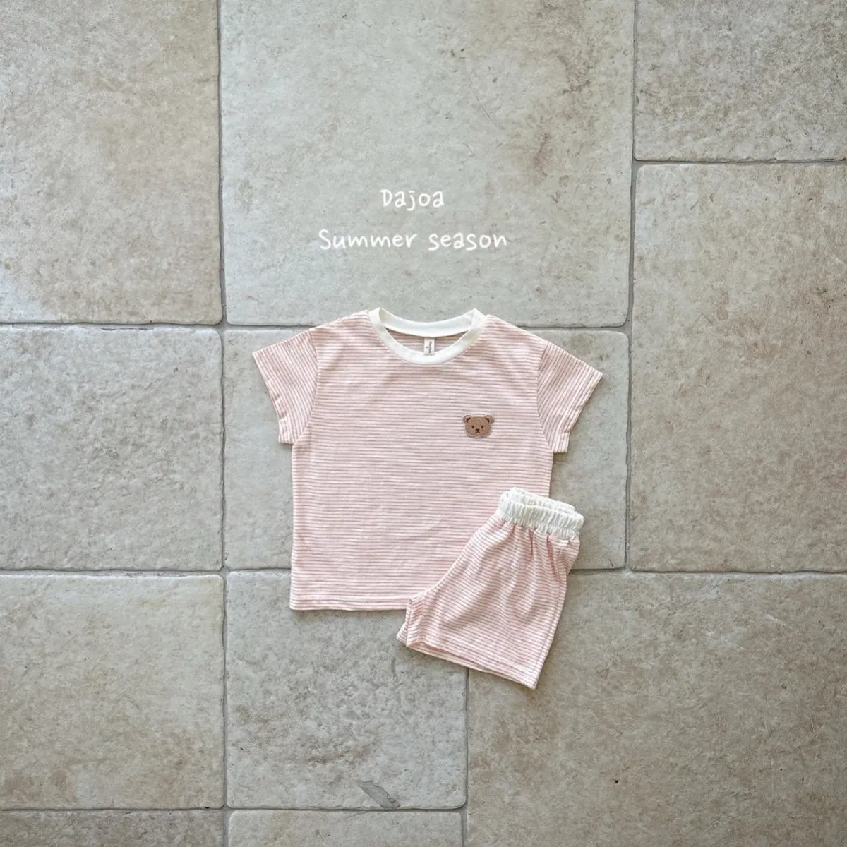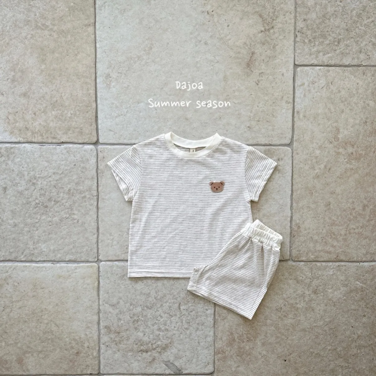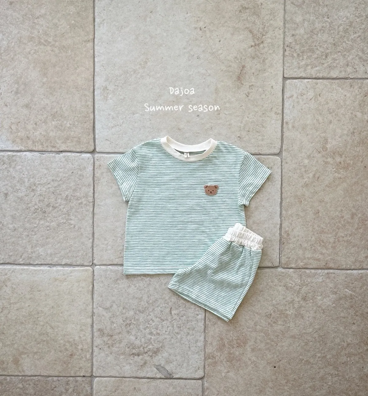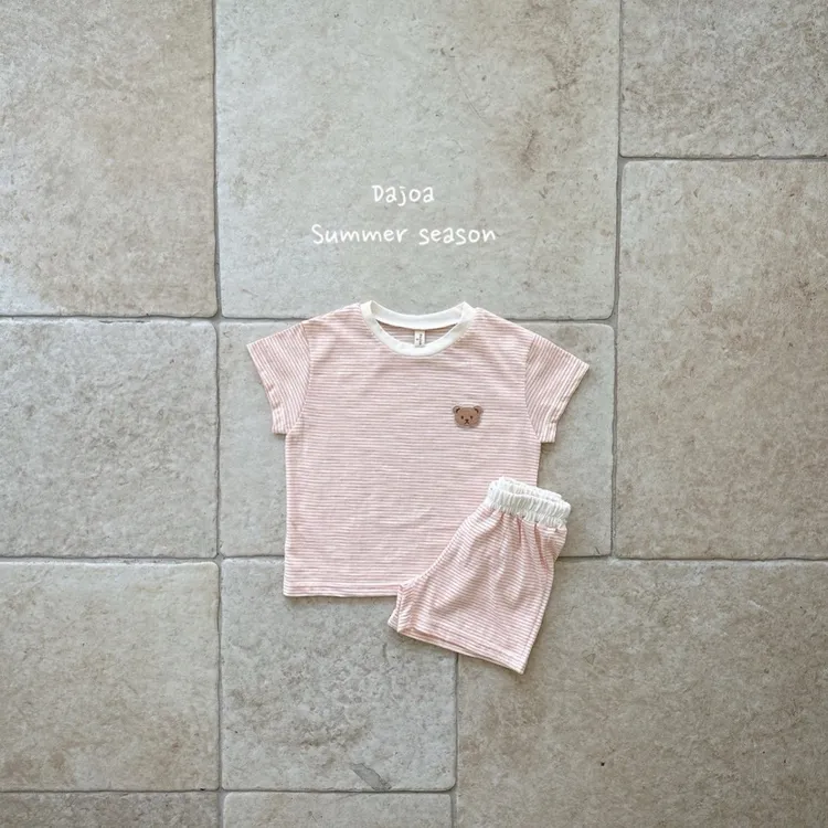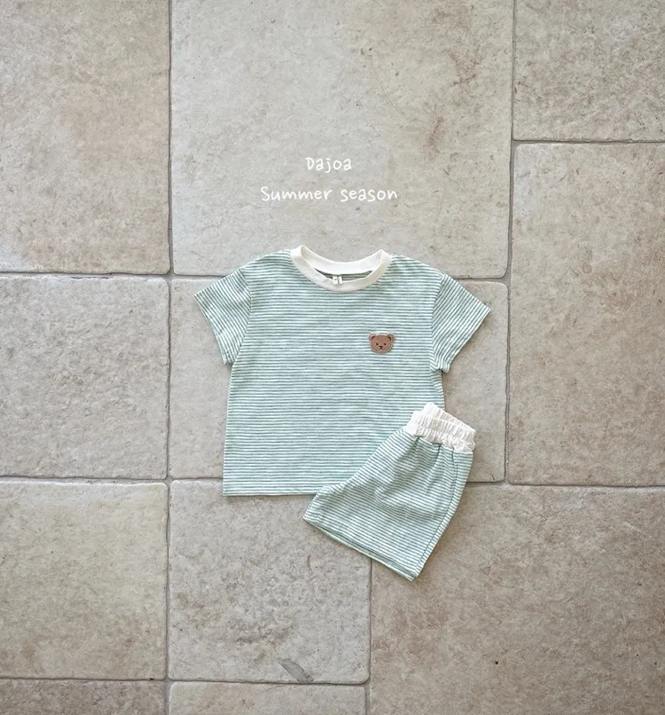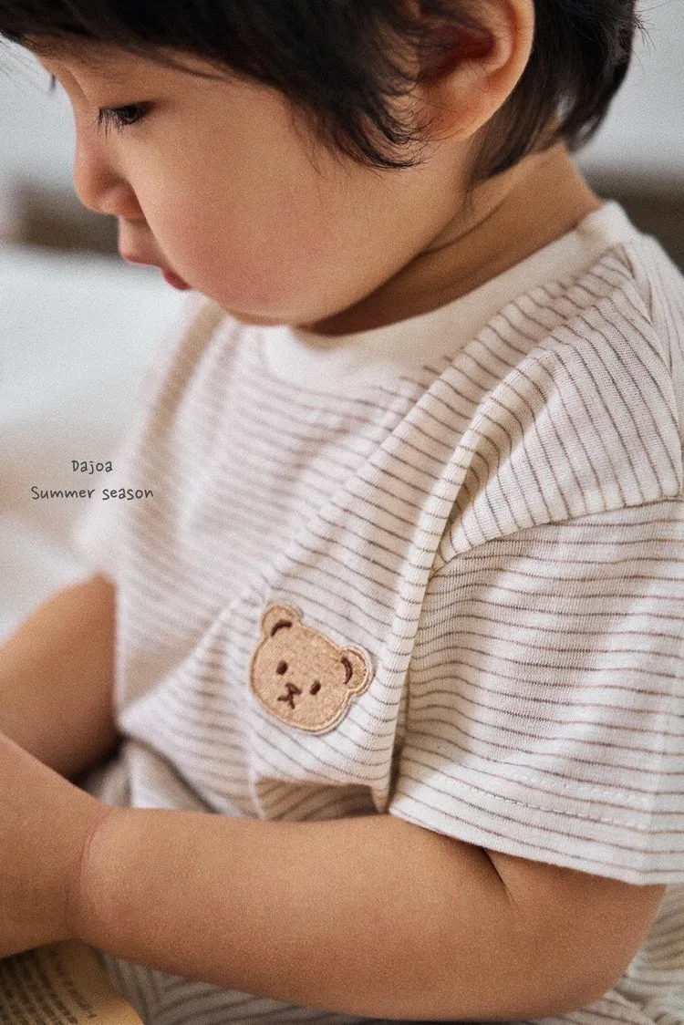 Dajoa 刺繡小熊細橫條套裝 共3色(米/橘/綠)