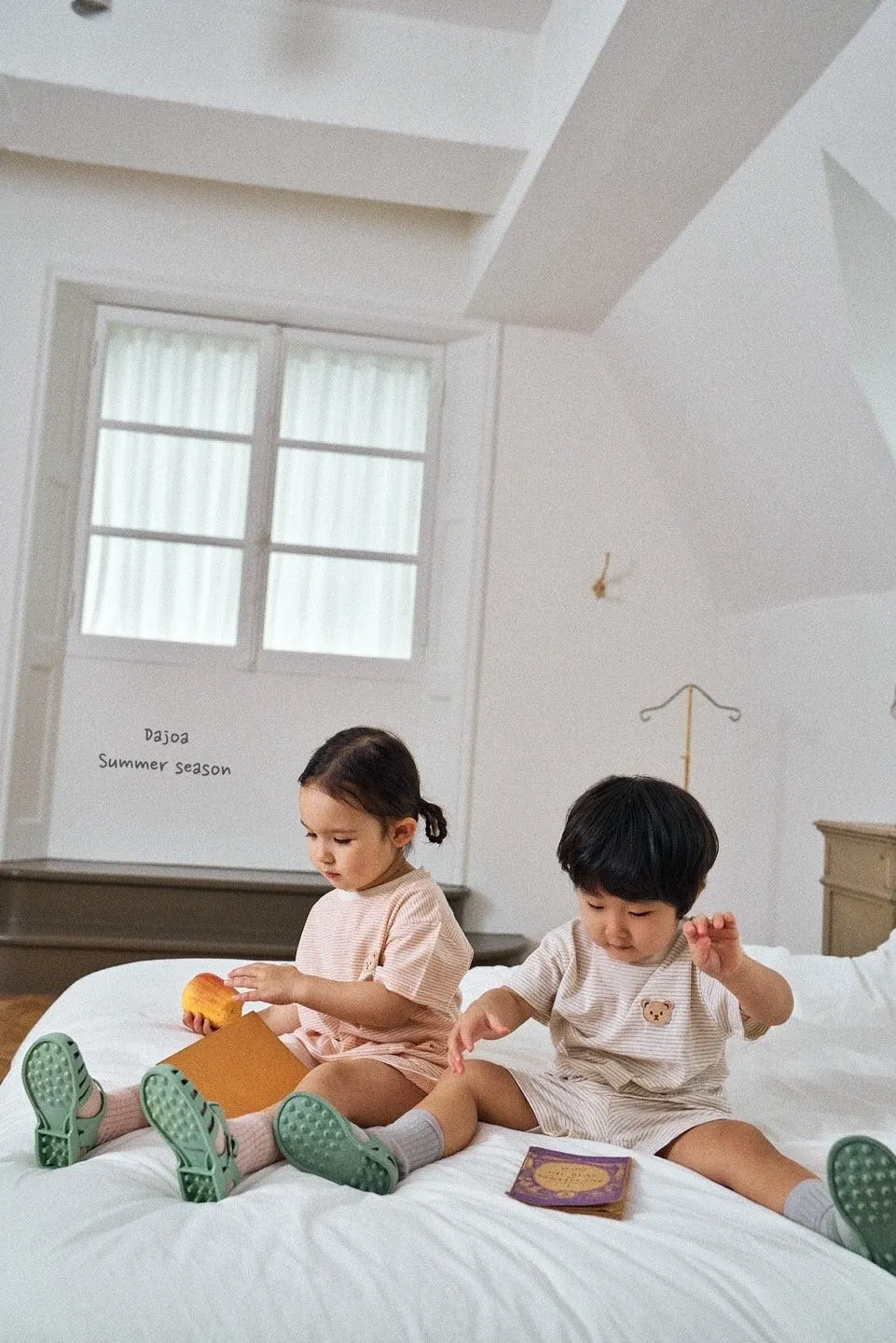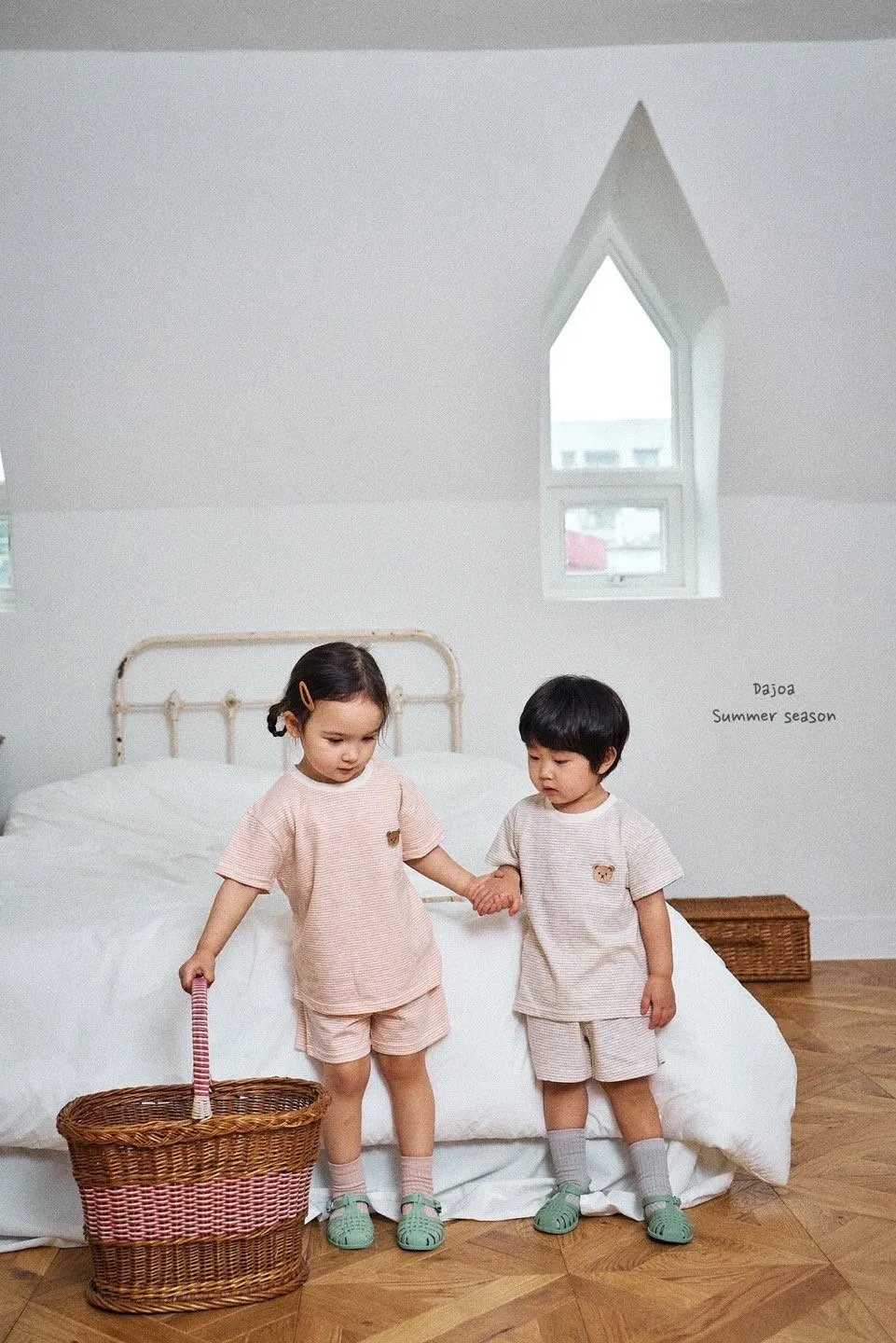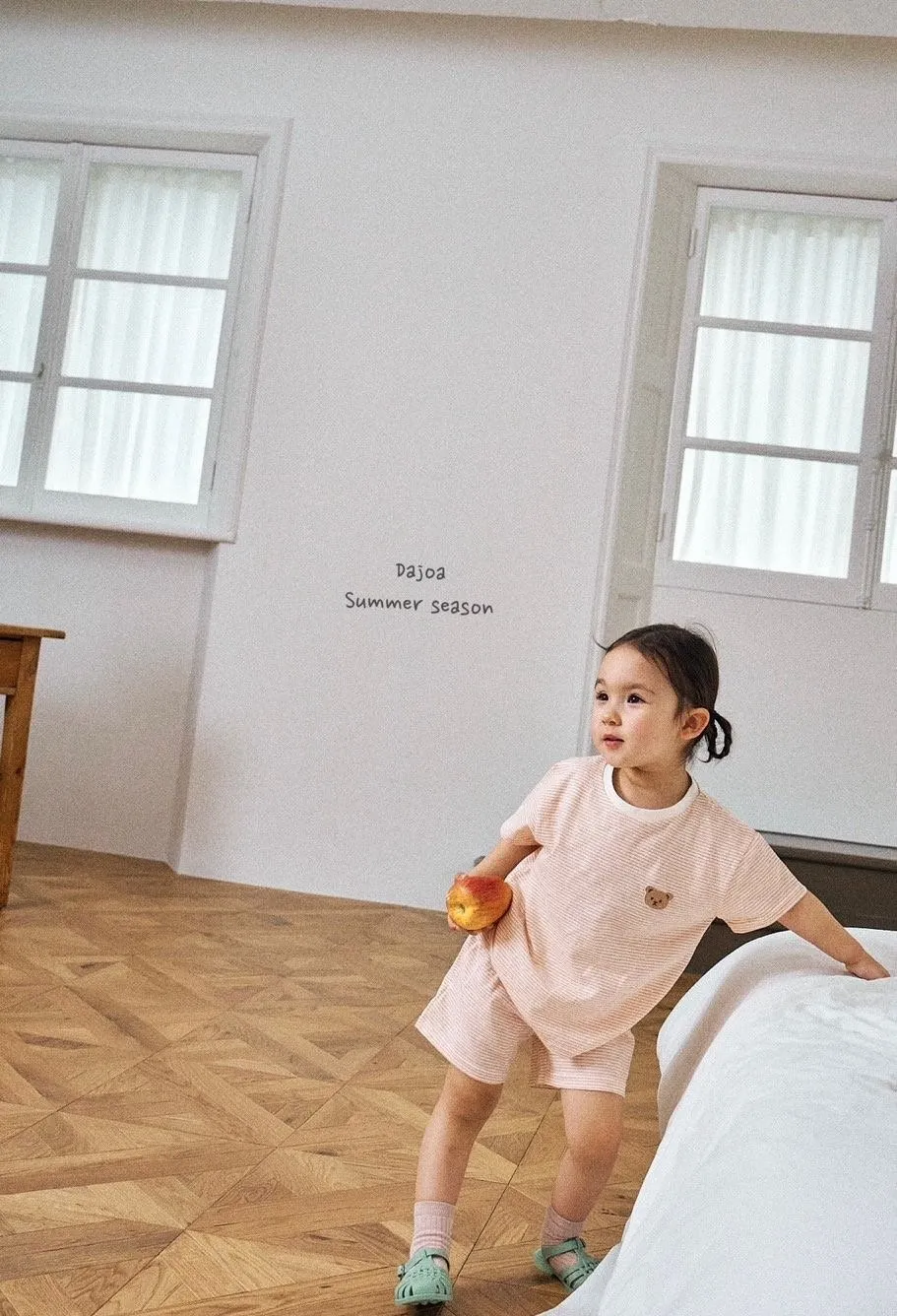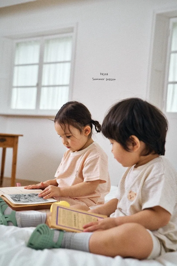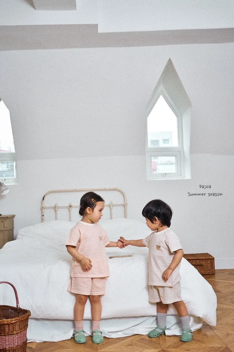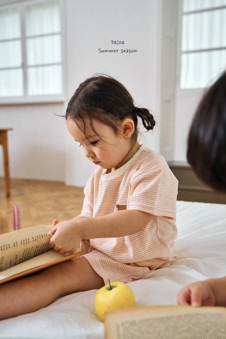 Dajoa 刺繡小熊細橫條套裝 共3色(米/橘/綠)