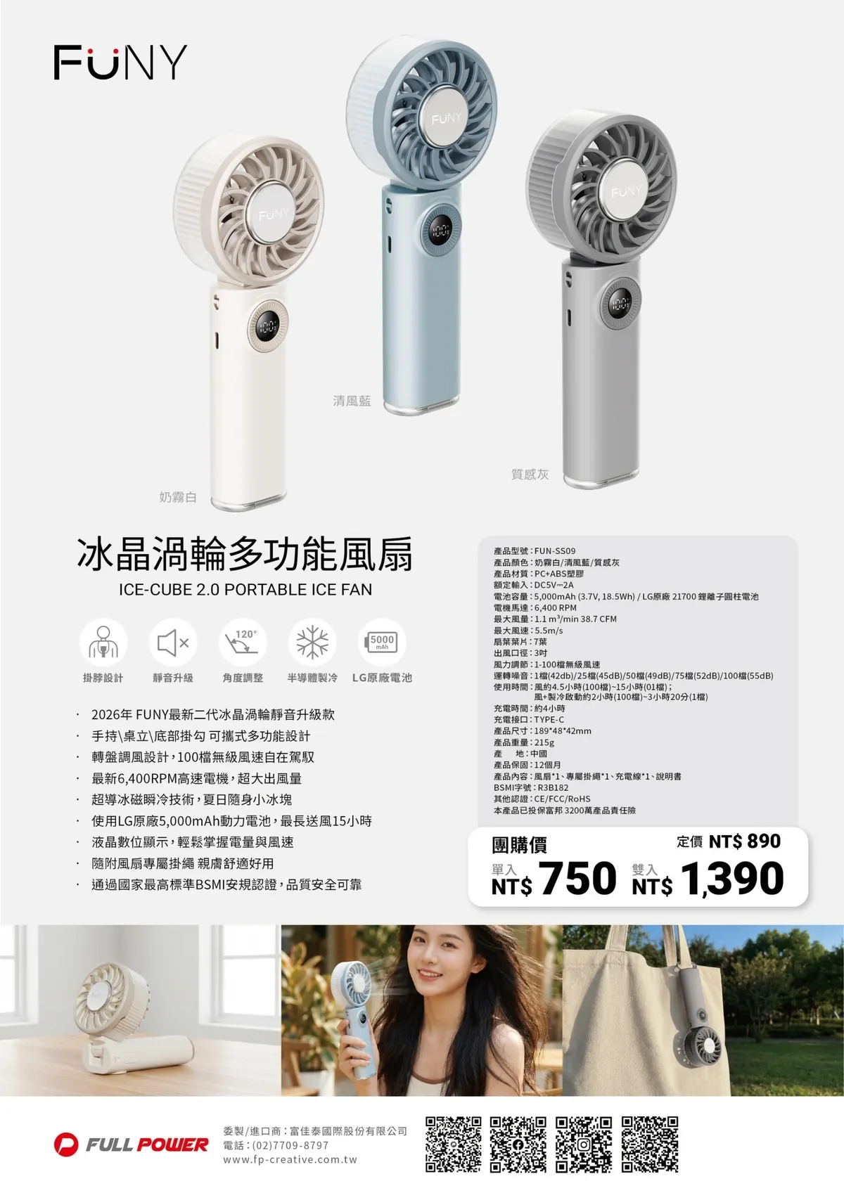 FUNY冰晶多功能手持風扇
