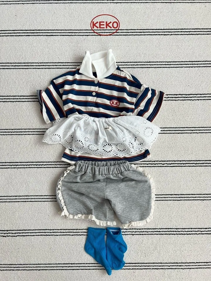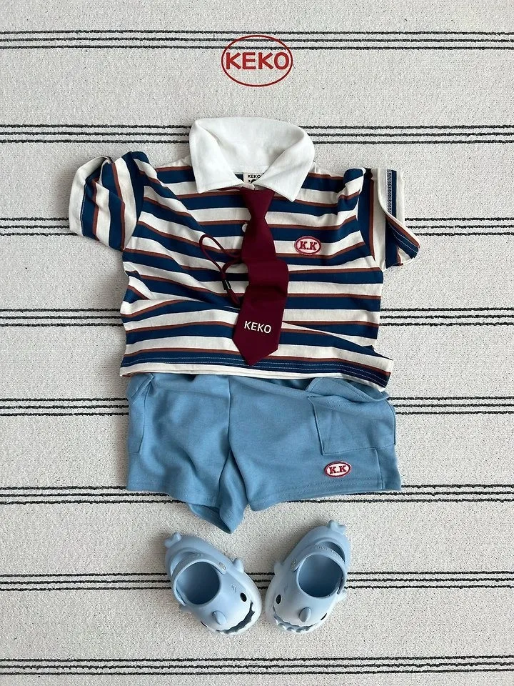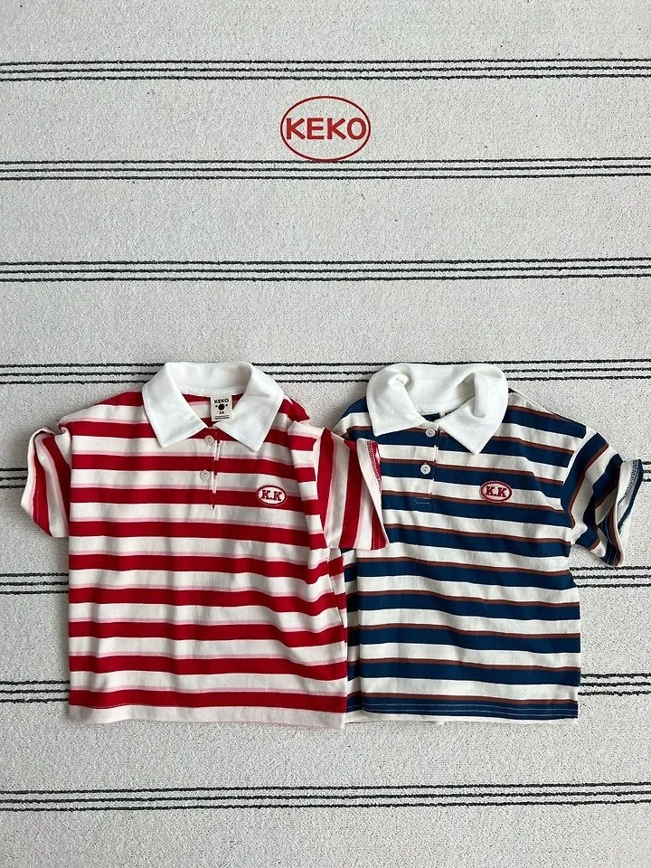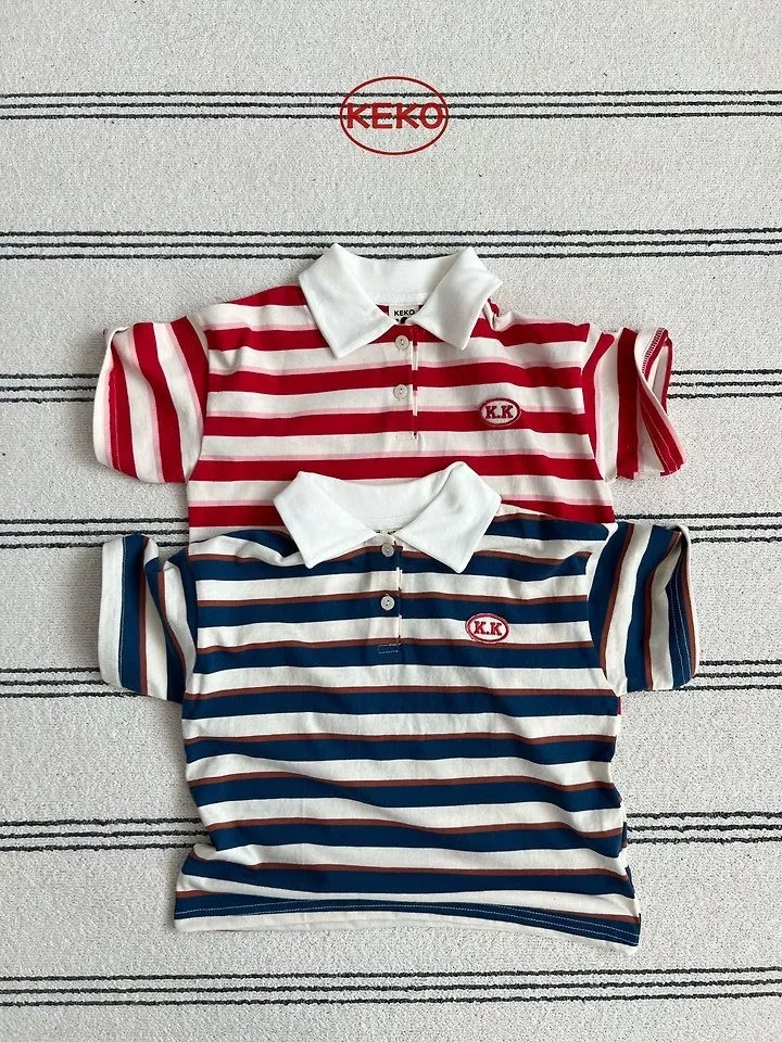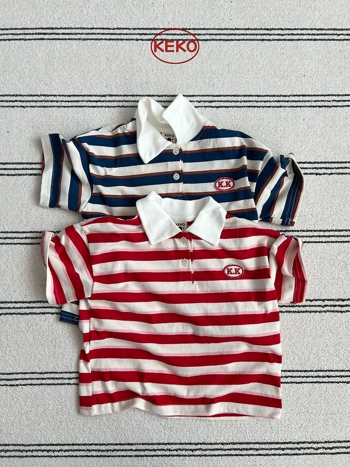 Keko 粗條紋白領半門襟T恤