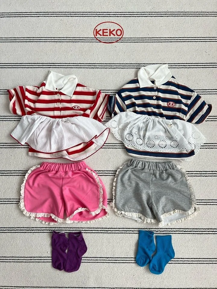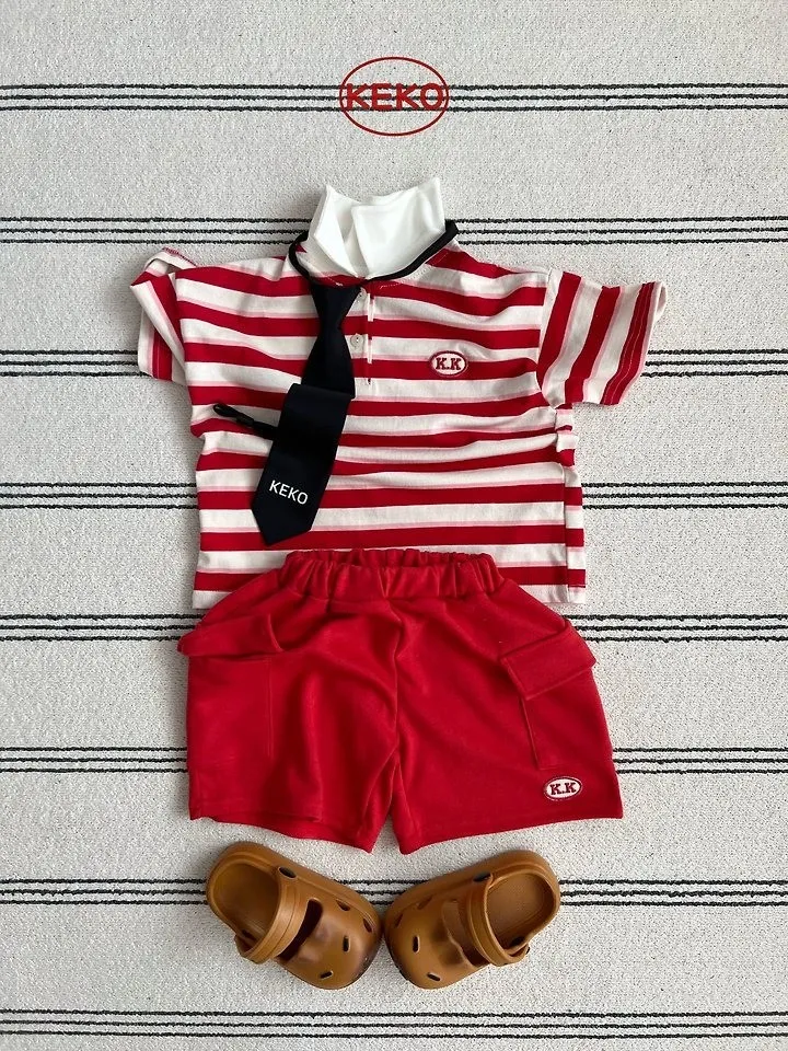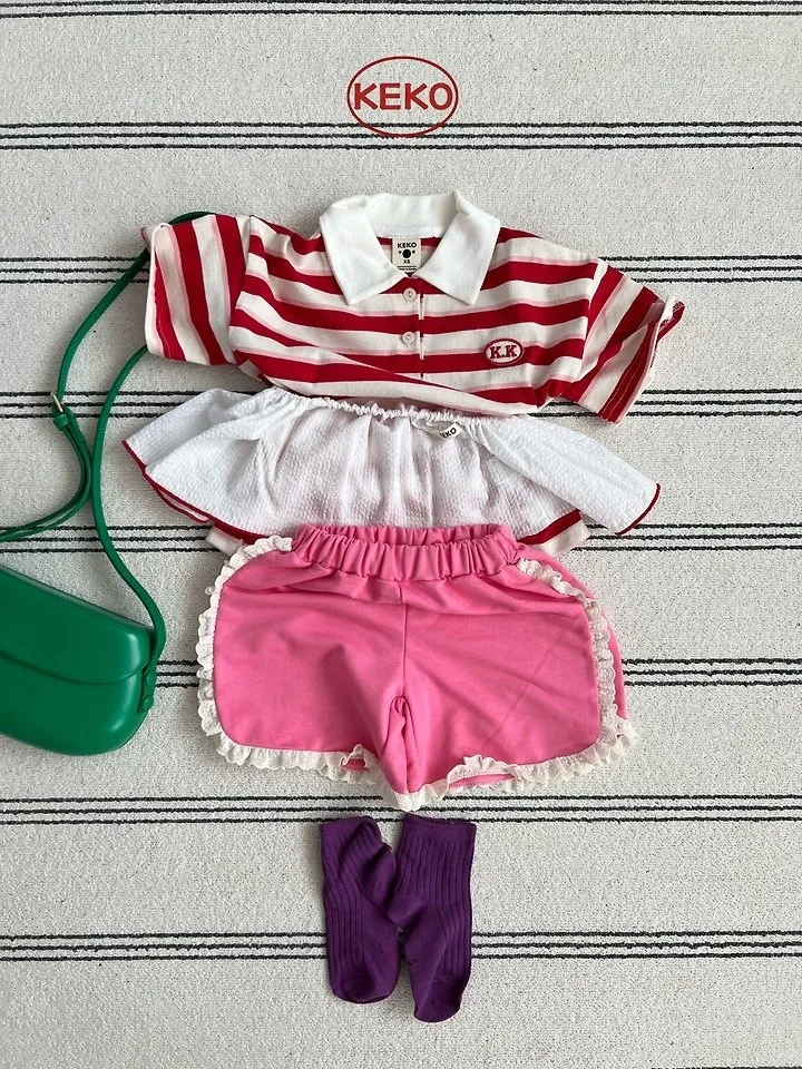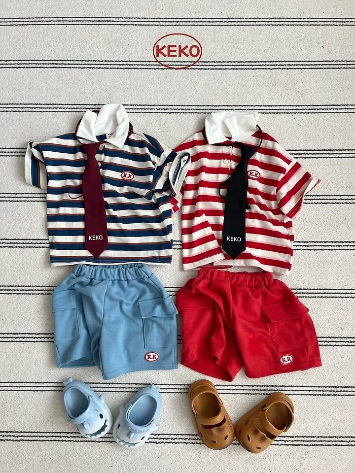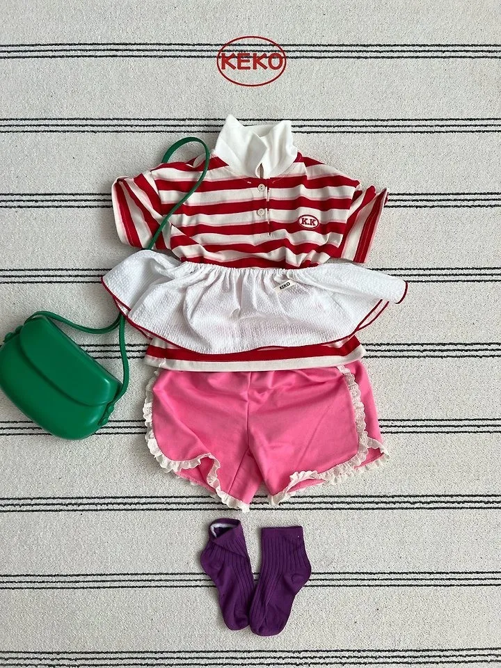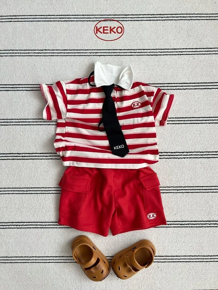 Keko 粗條紋白領半門襟T恤
