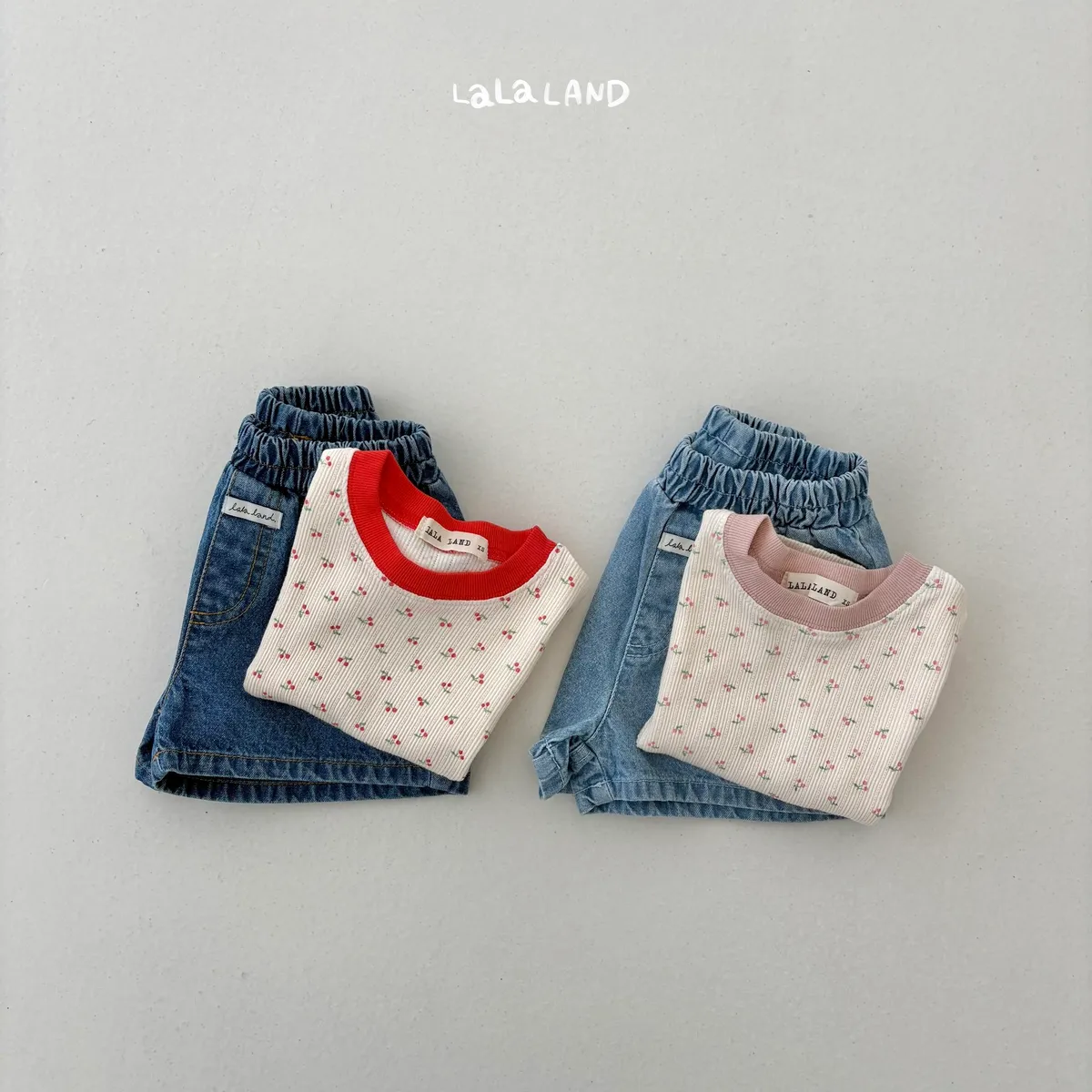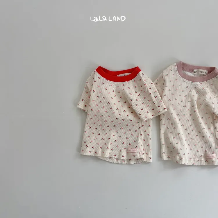 Lalaland 櫻桃坑條短袖T恤