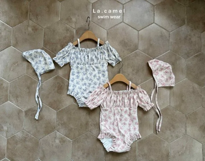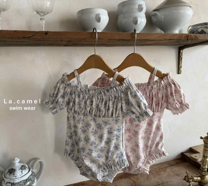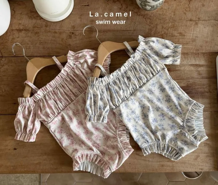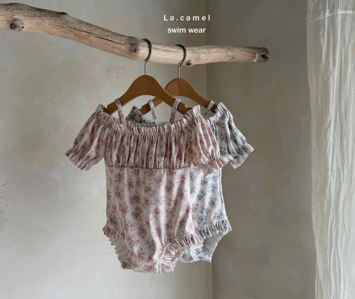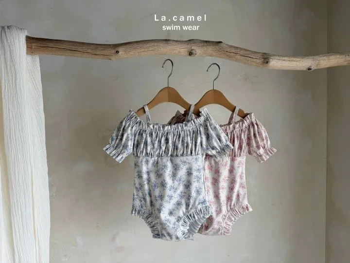La.Camel Jude抽褶平肩連身泳裝