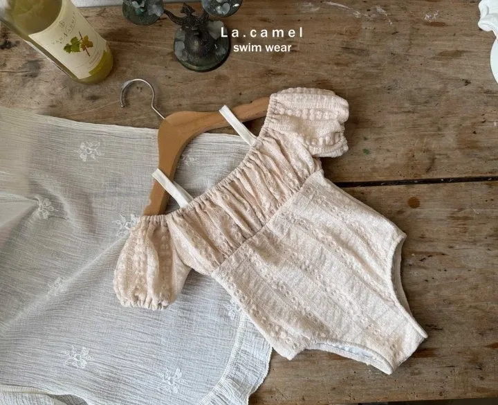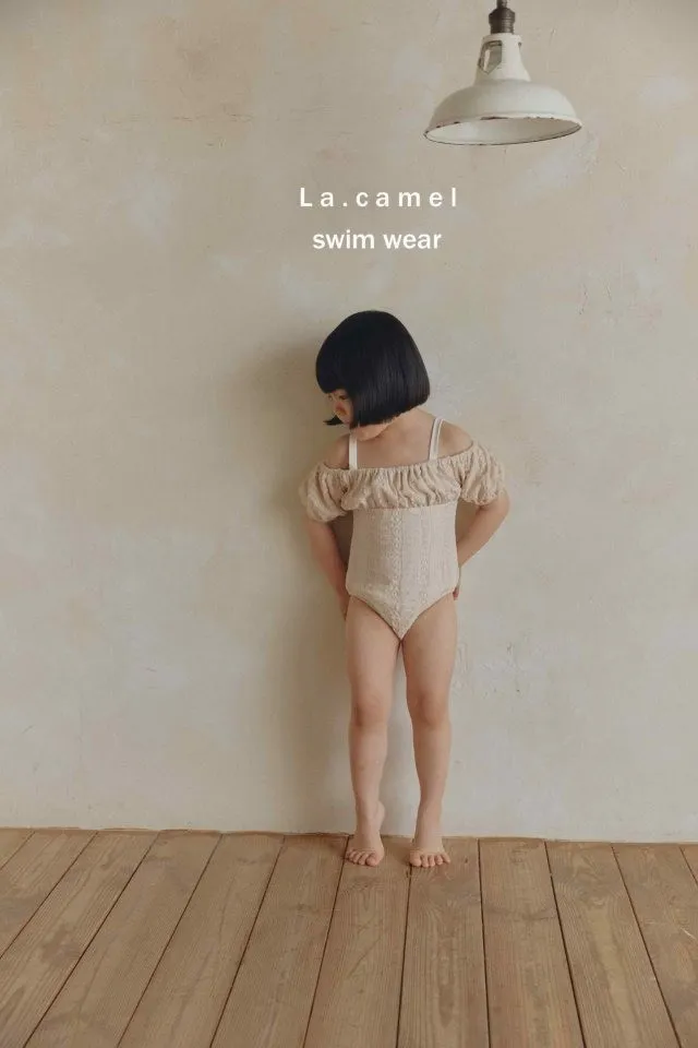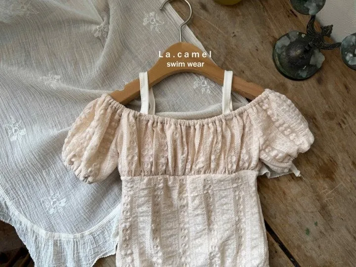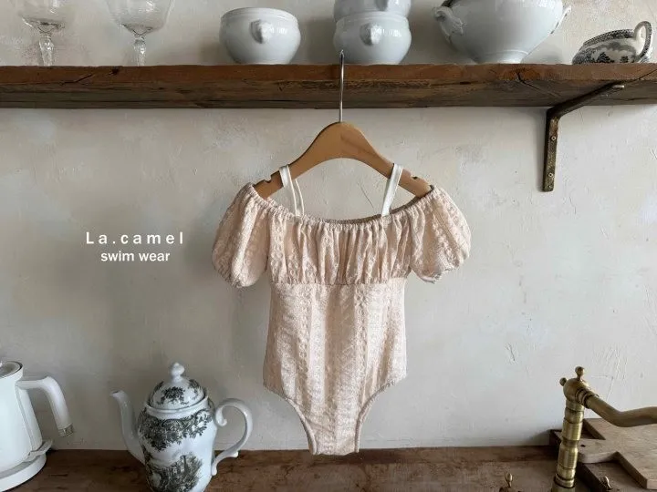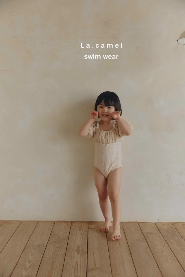 La.Camel 蕾絲配色剪接泳連身裝
