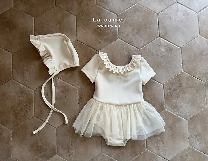 La.Camel 荷葉邊綁帶泳帽