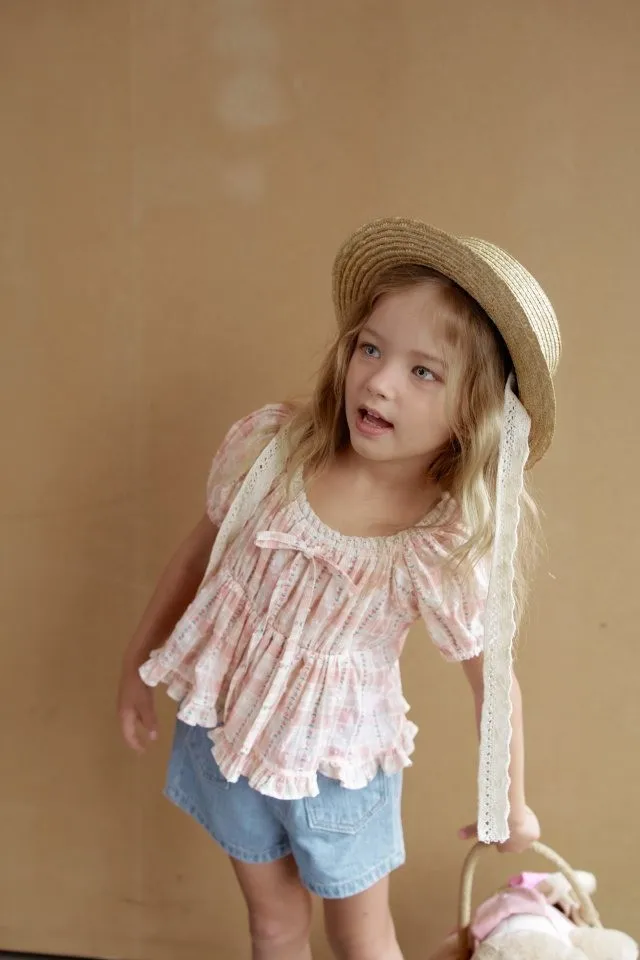 Momoann 格紋印花澎澎罩衫