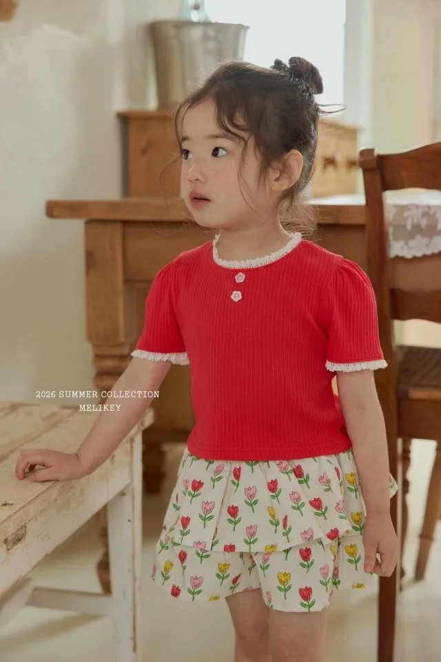 Melikey 柔軟蕾絲墜邊T恤