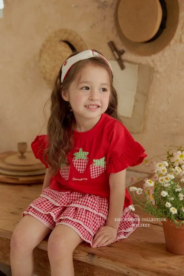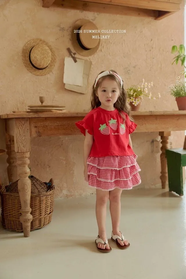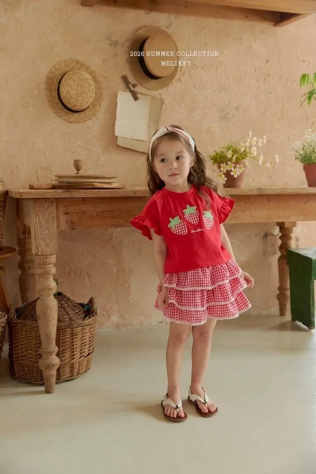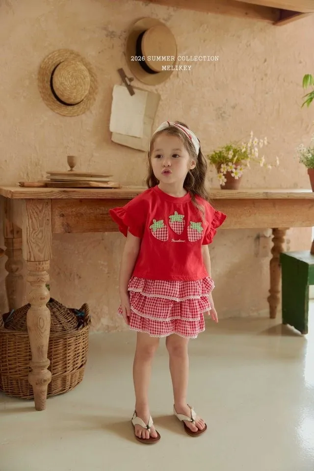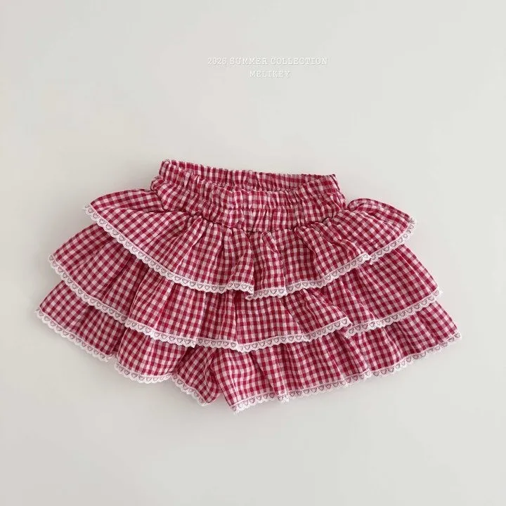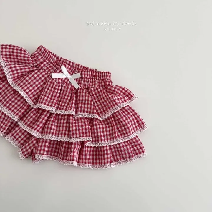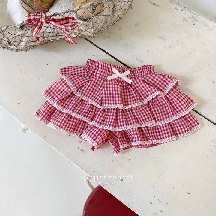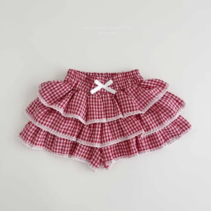 Melikey 紅格紋蛋糕短褲