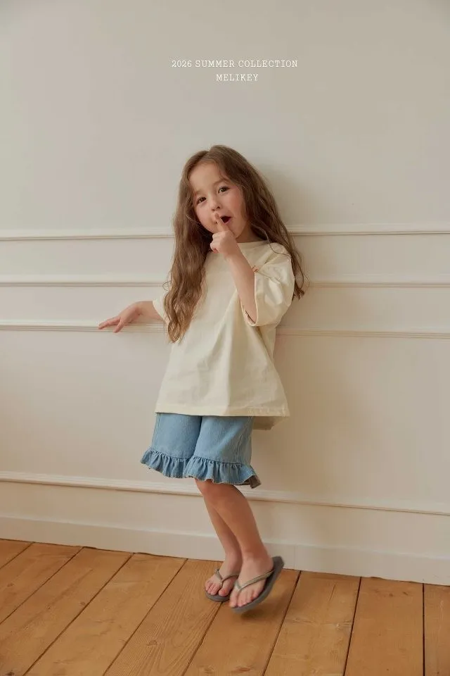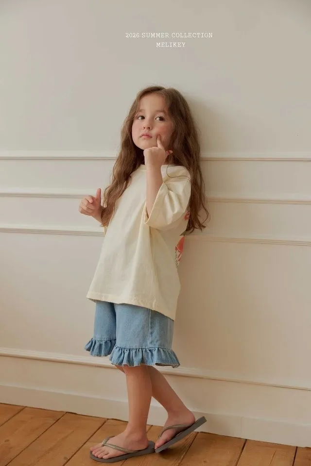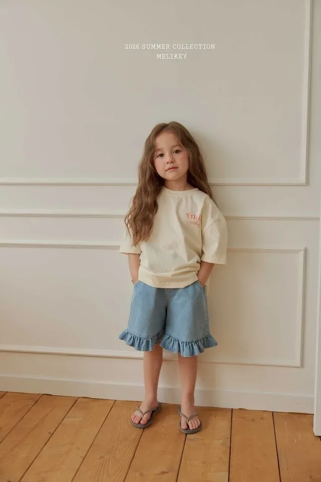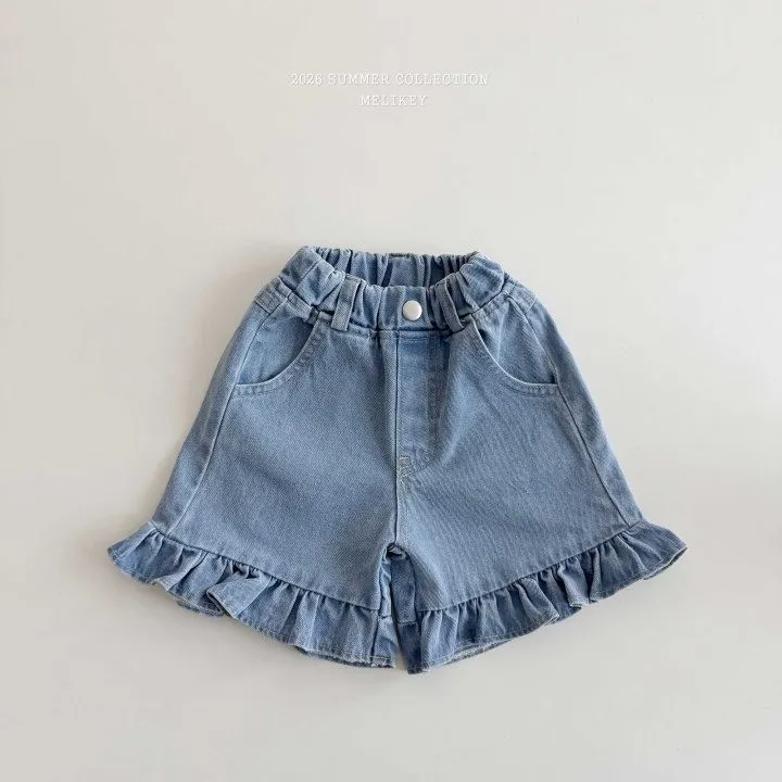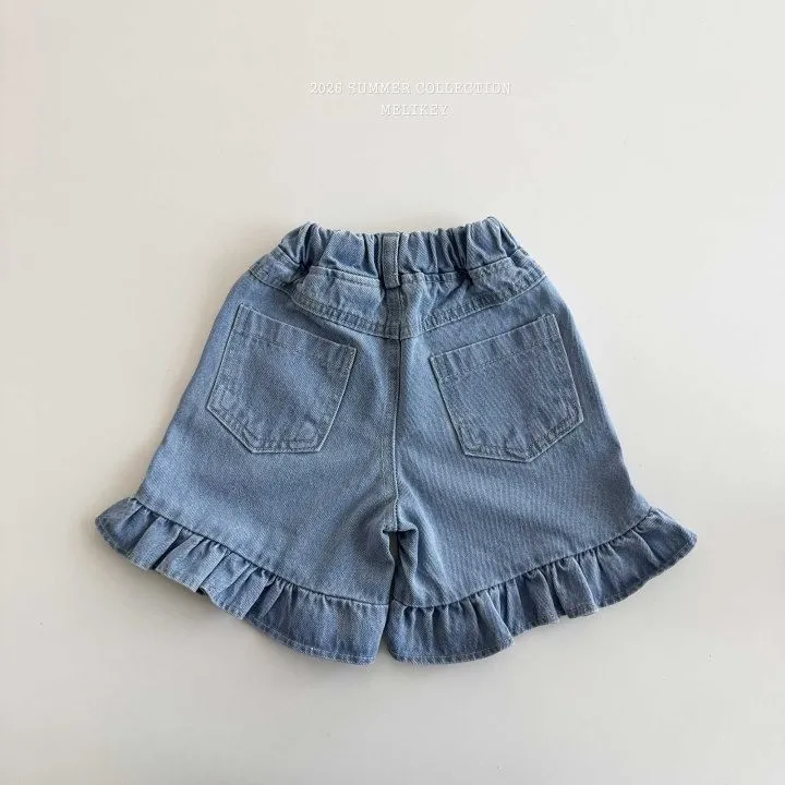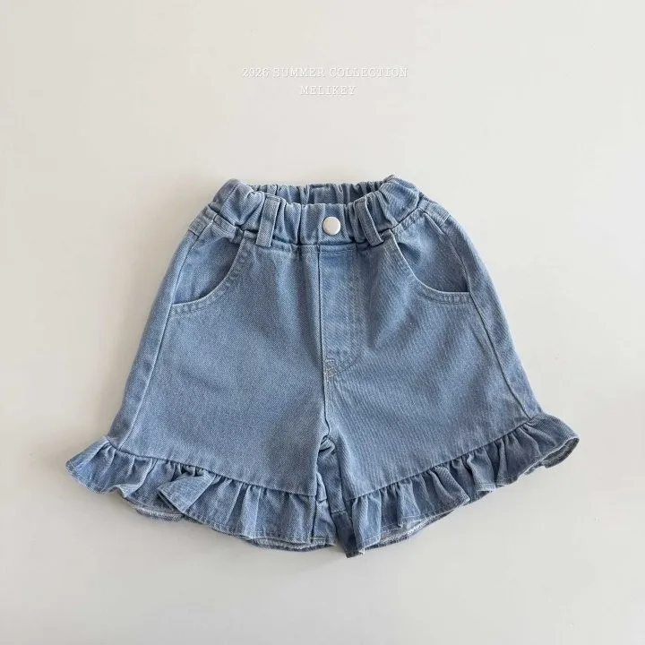Melikey 荷葉邊五分牛仔褲