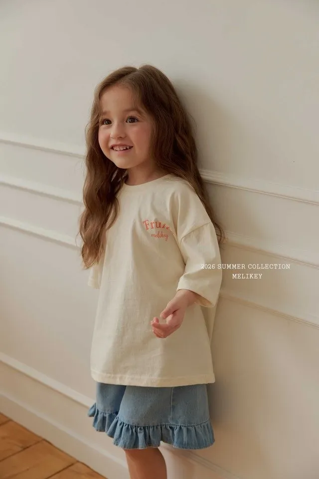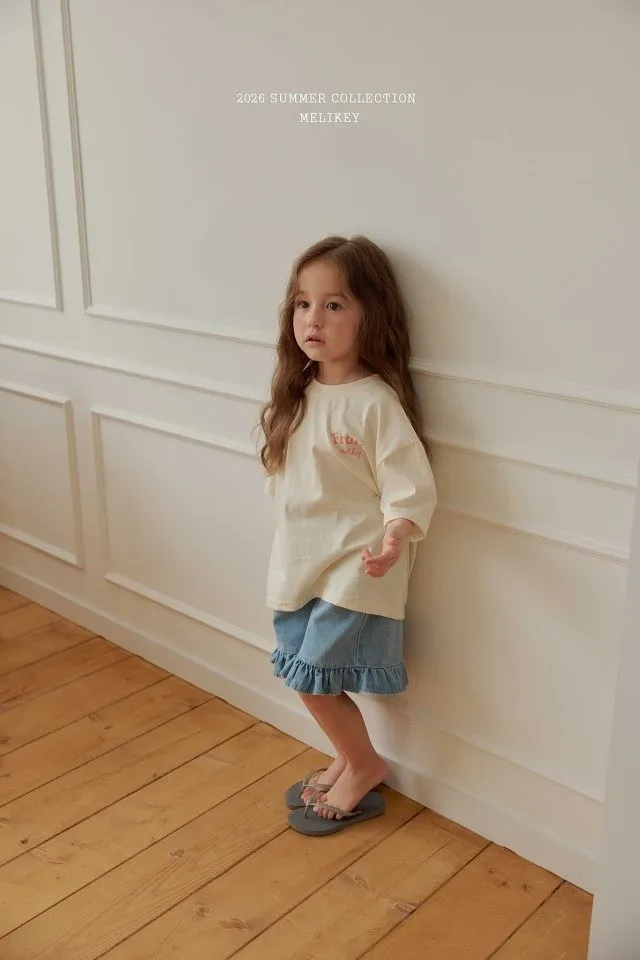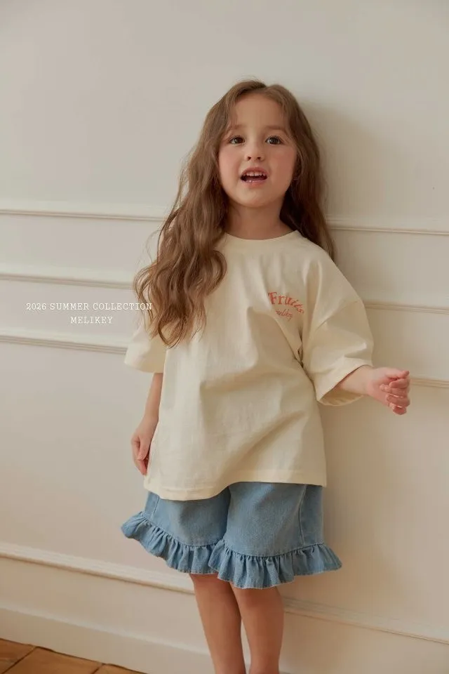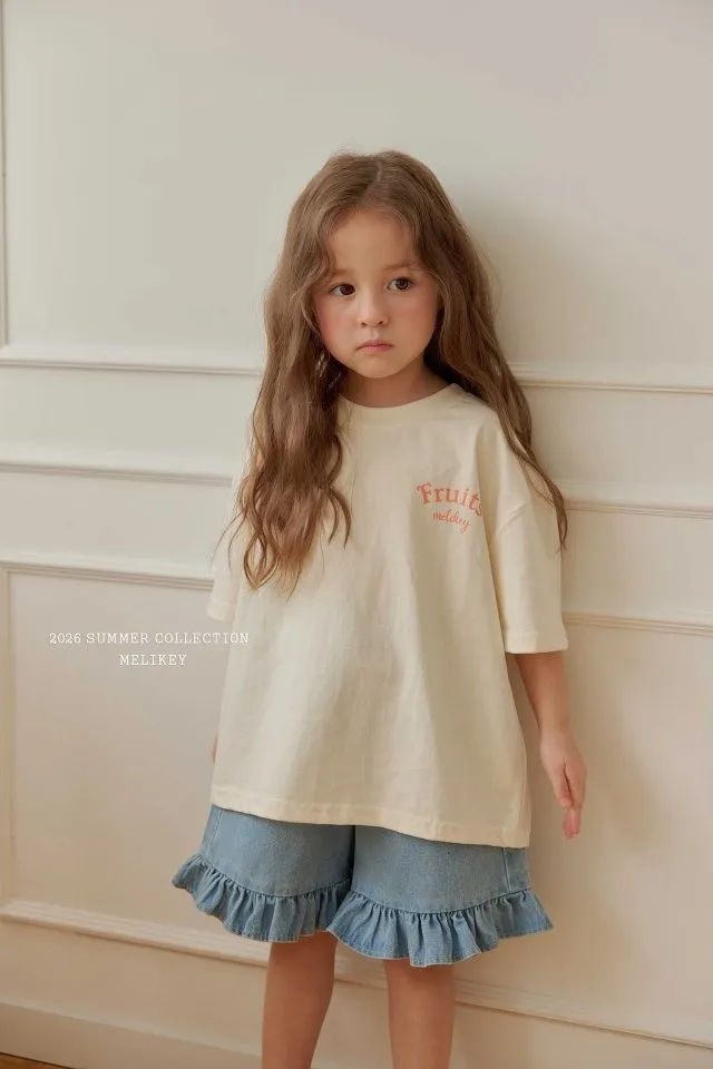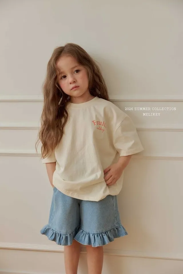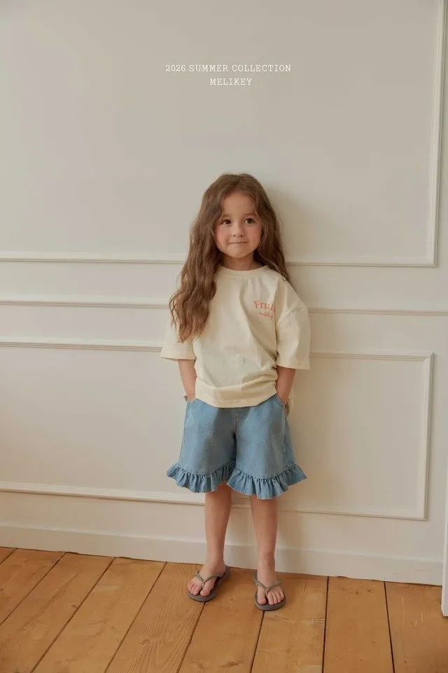Melikey 荷葉邊五分牛仔褲