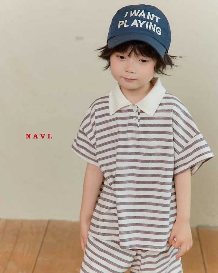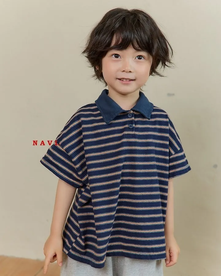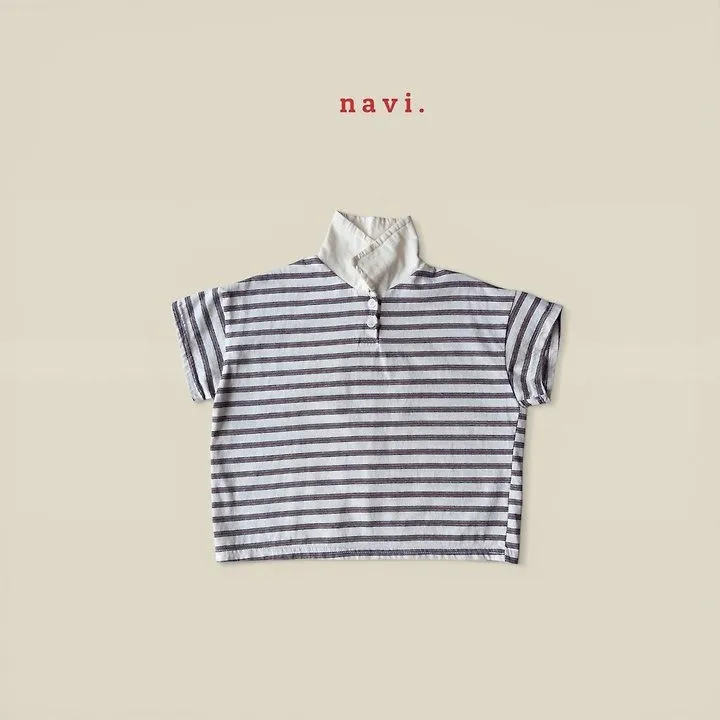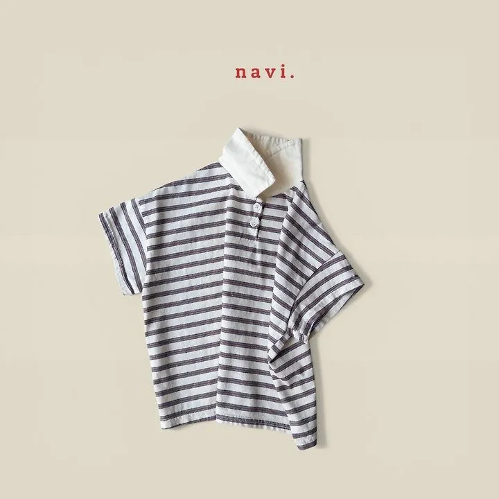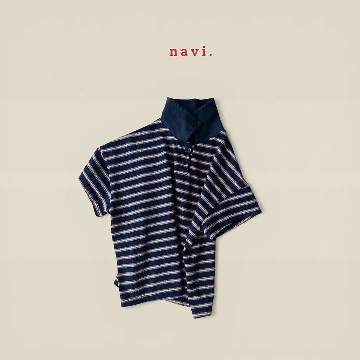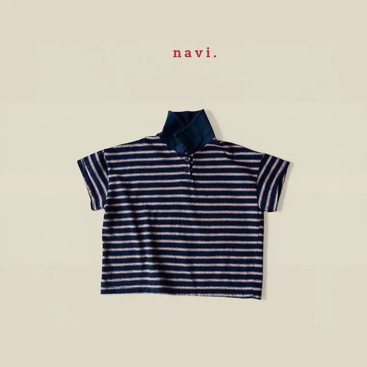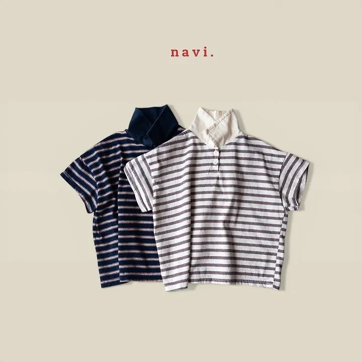 Navi Momal橫條紋翻領T恤 共2色(白/深藍)
