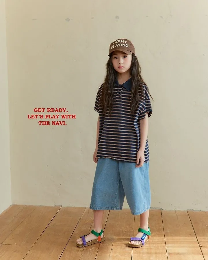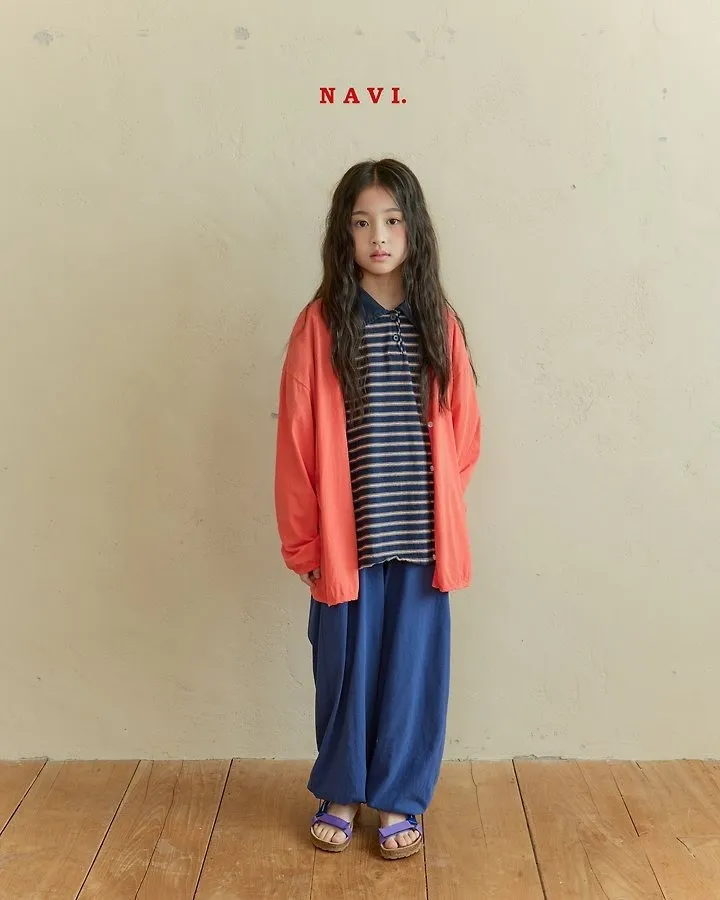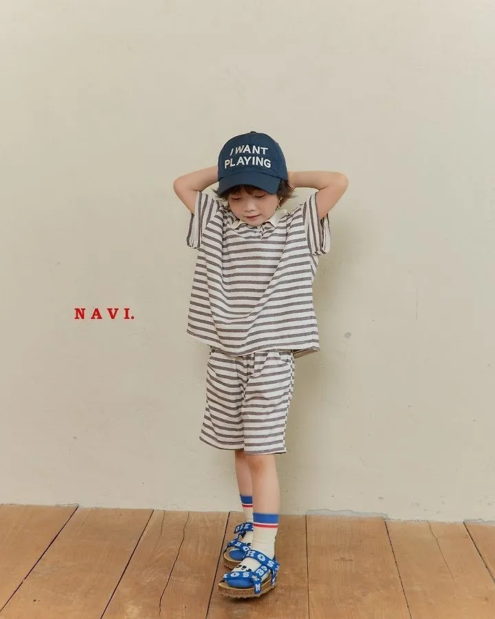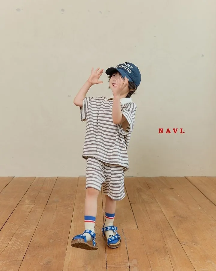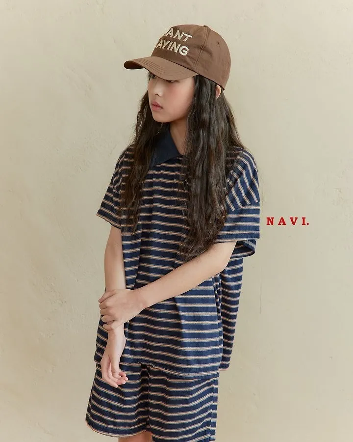 Navi Momal橫條紋翻領T恤 共2色(白/深藍)