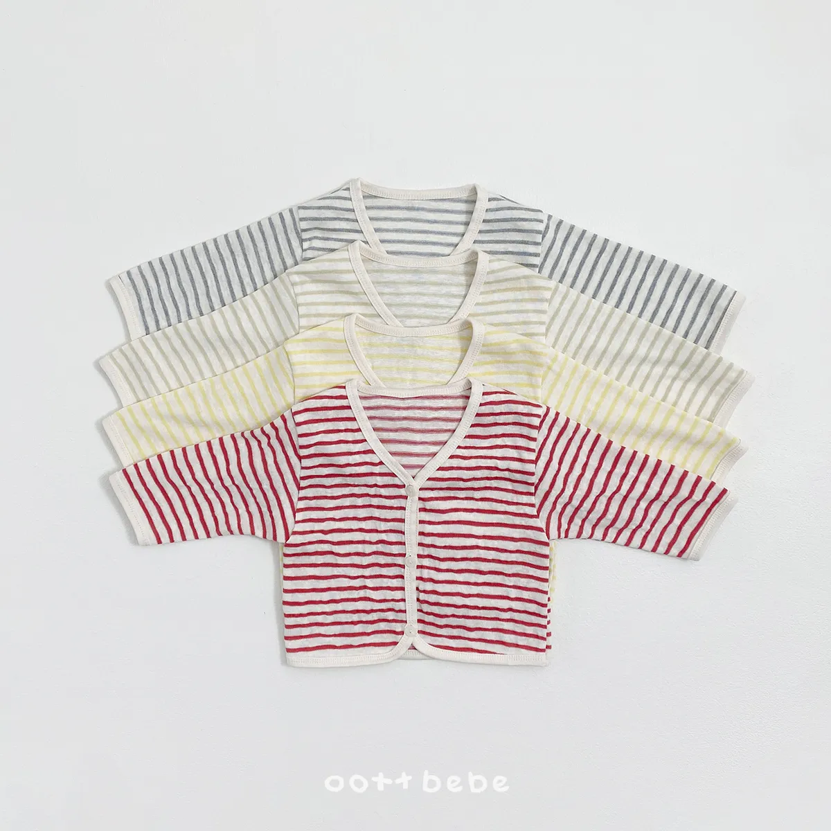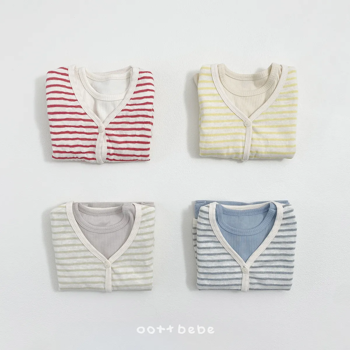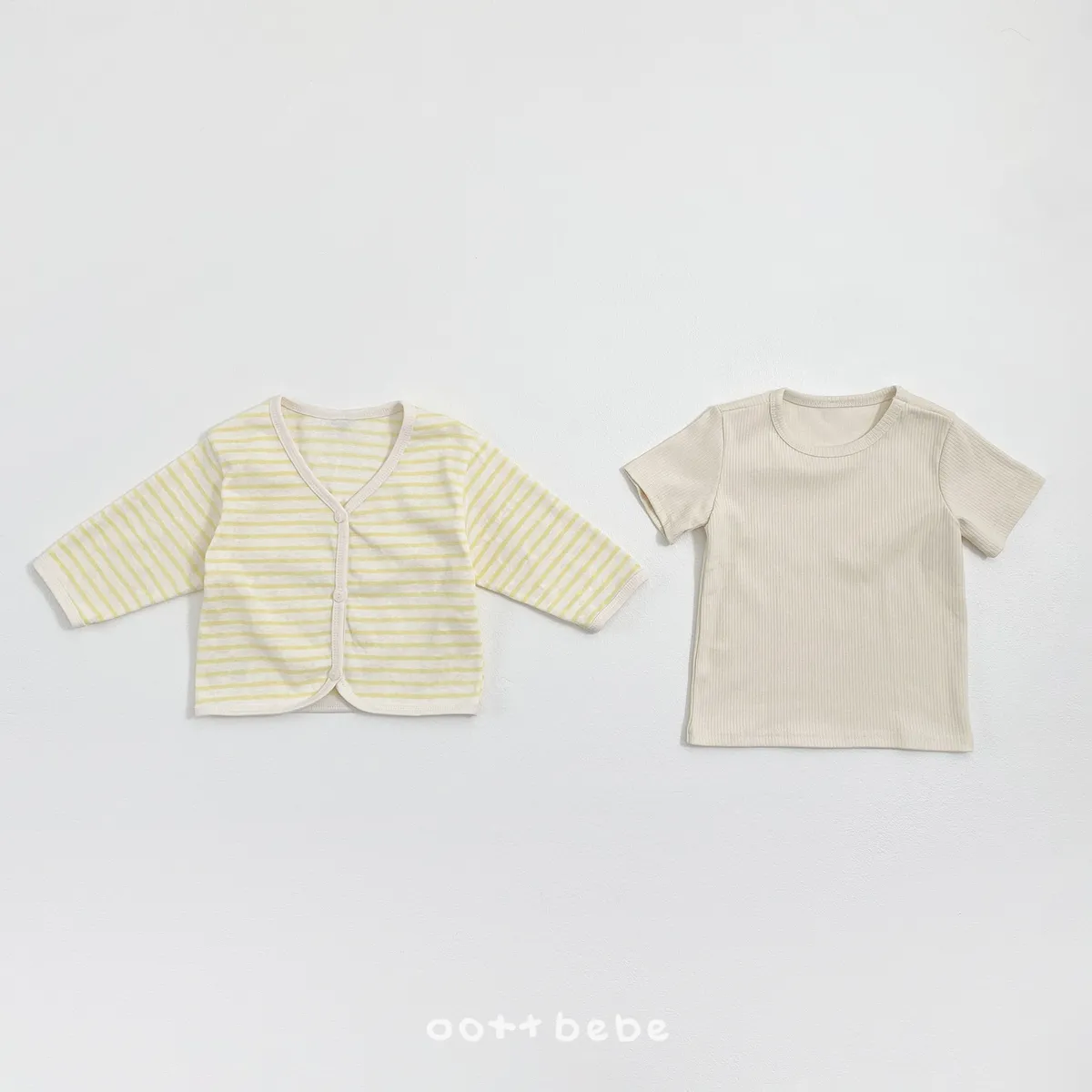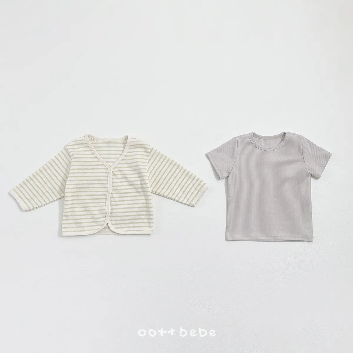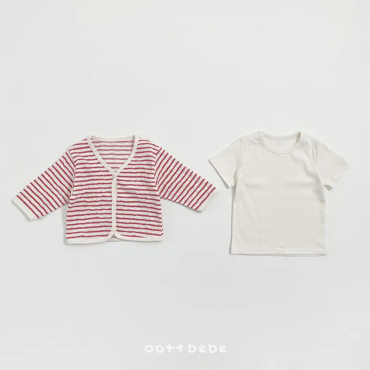 OOTTbebe 條紋外套兩件套組(短T恤+外套)