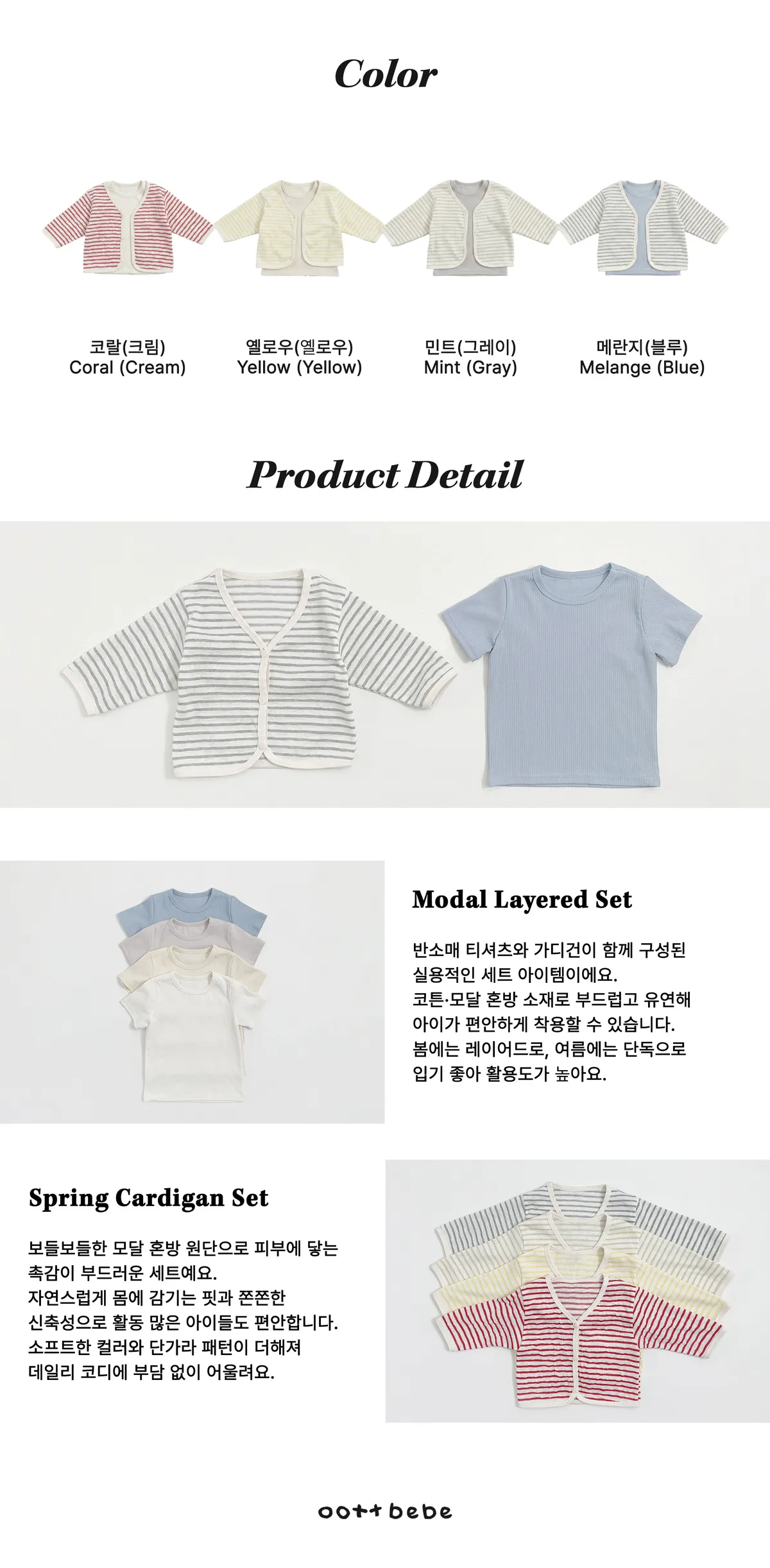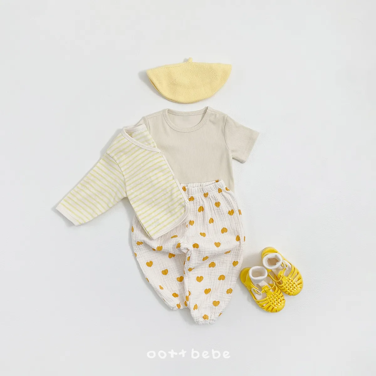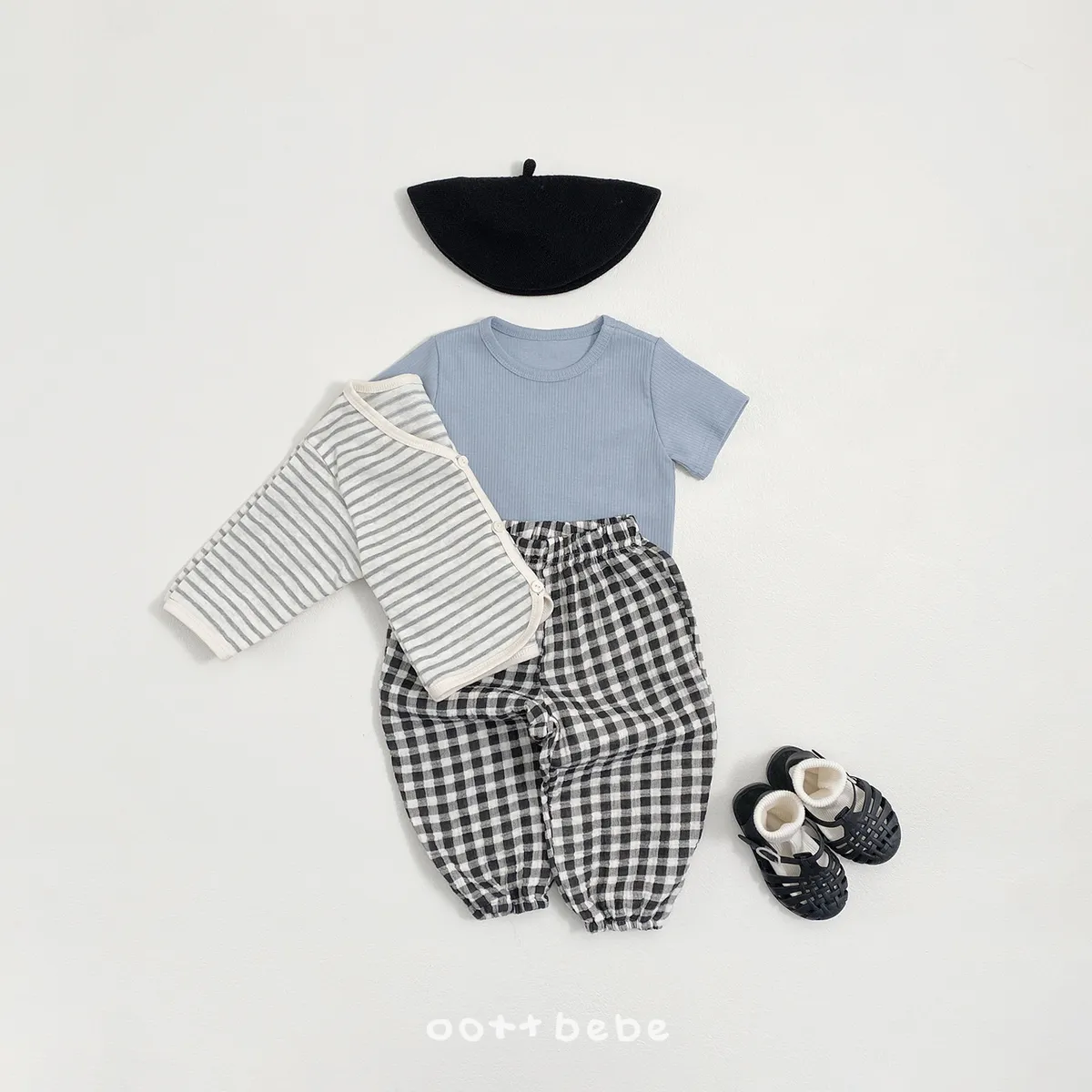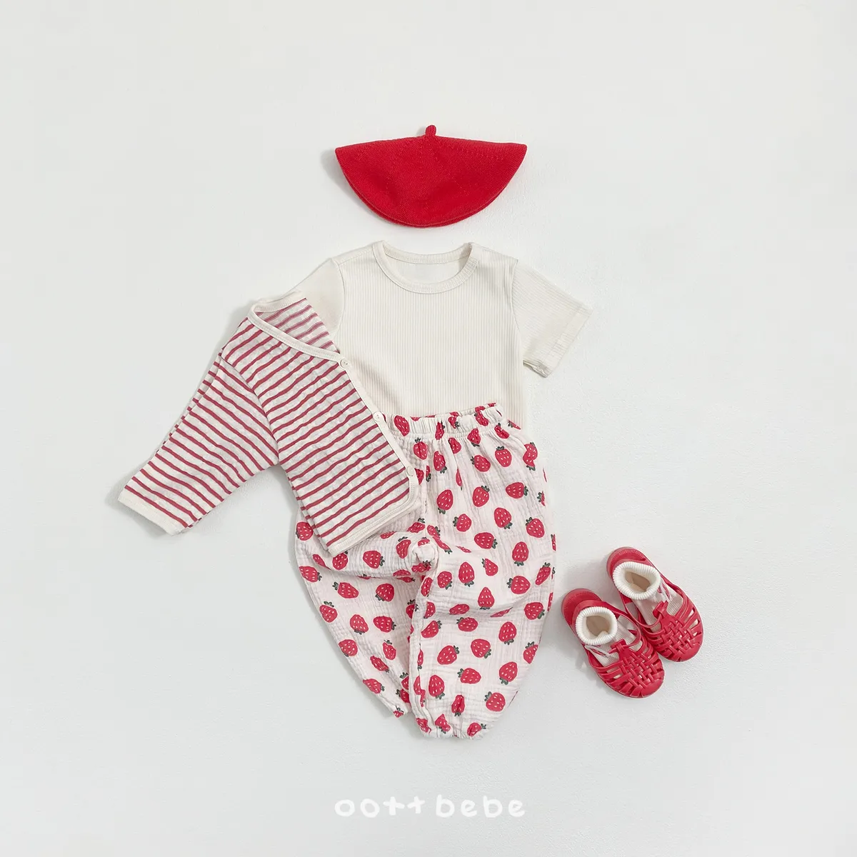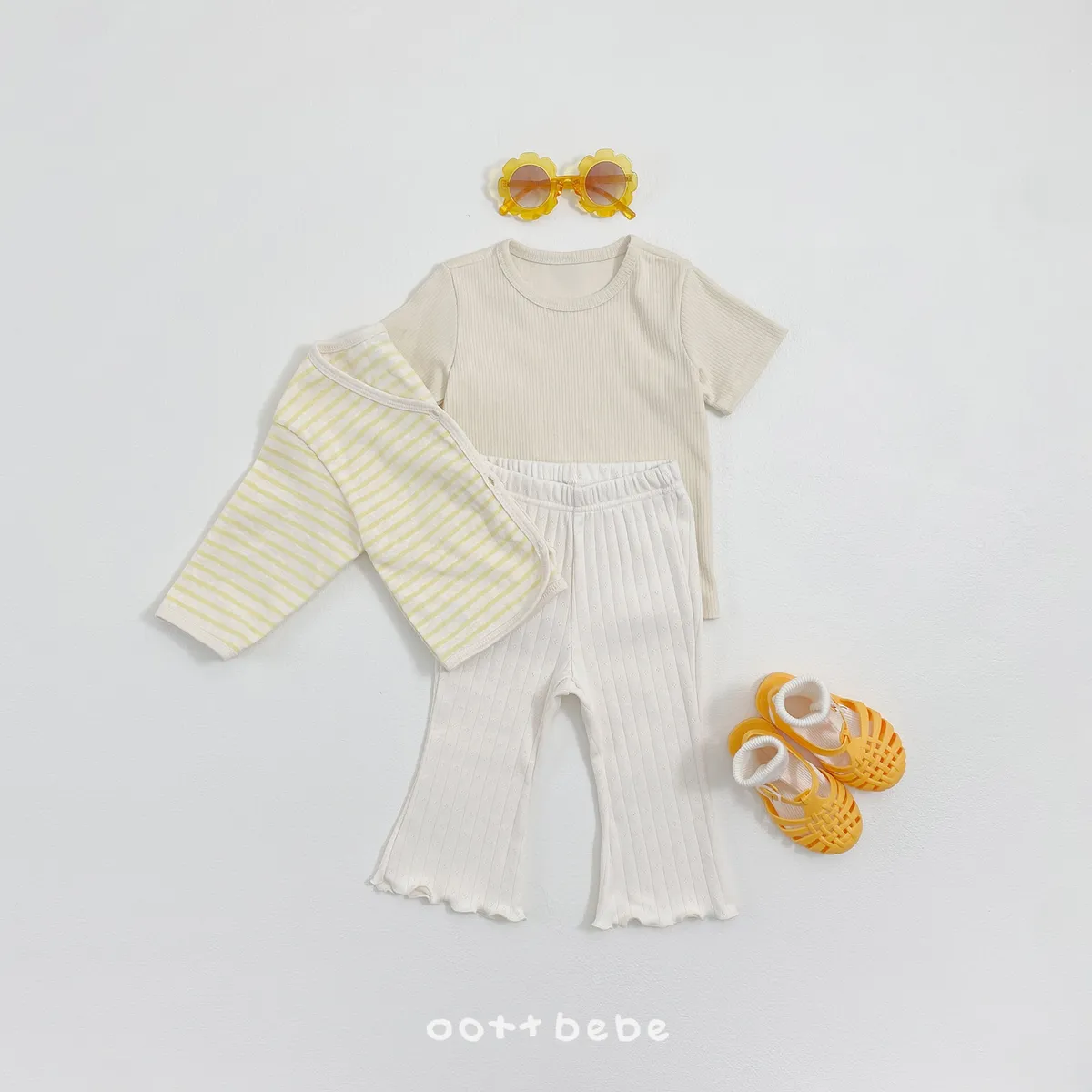 OOTTbebe 條紋外套兩件套組(短T恤+外套)
