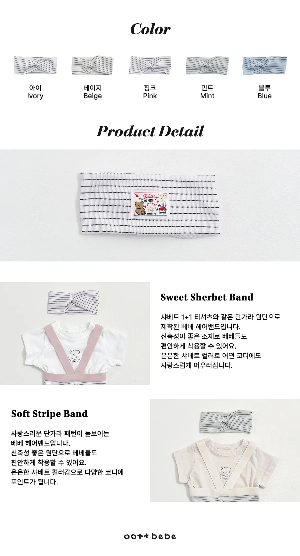 OOTTbebe 條紋髮帶 (Bebe款)