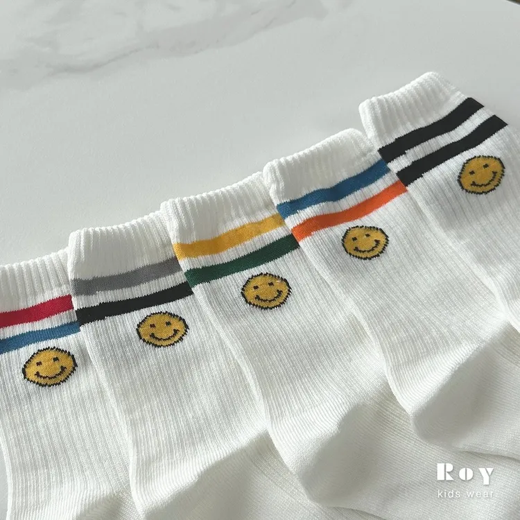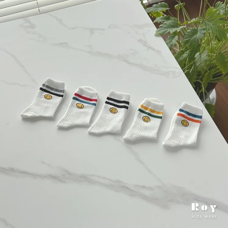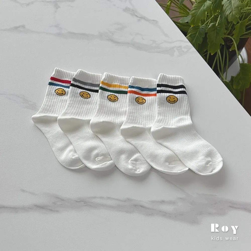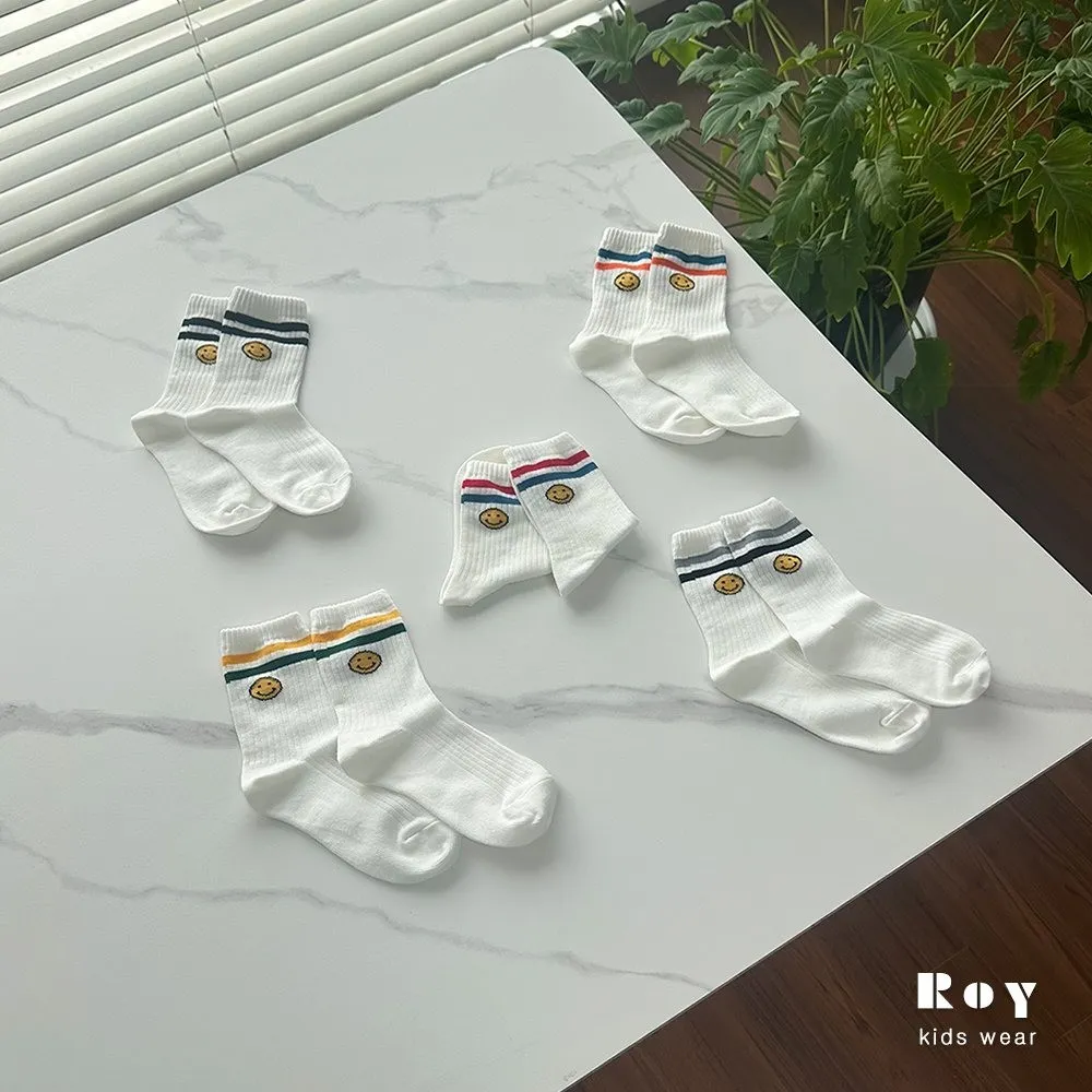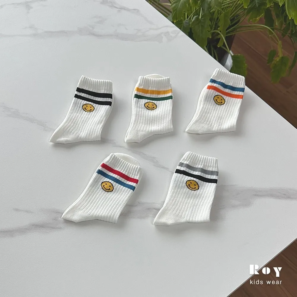 Roy 線條笑臉襪5件組(親子款)
