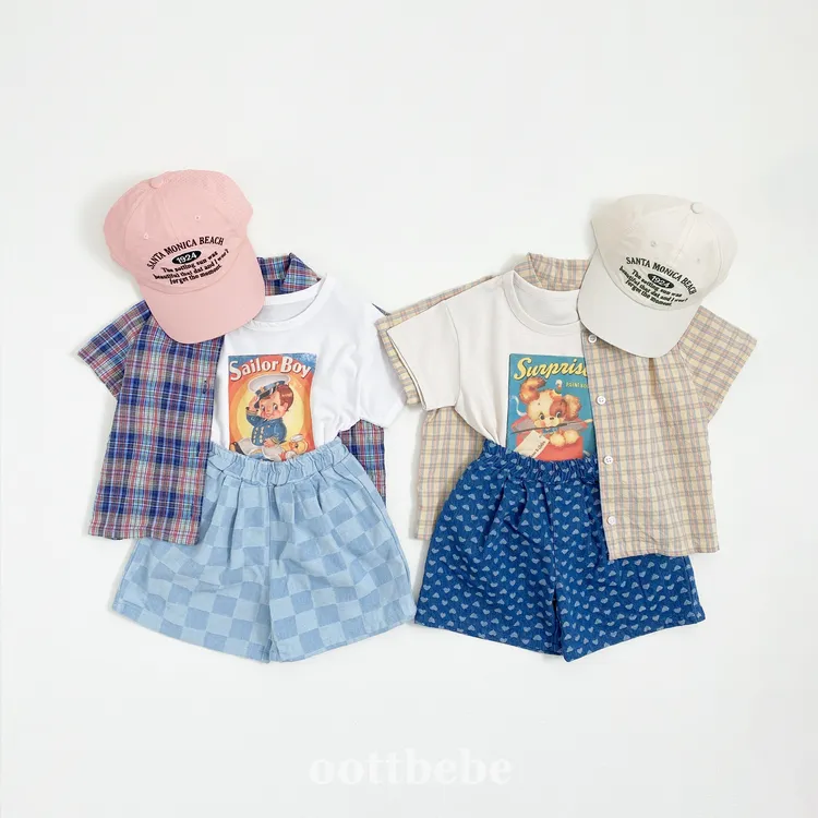 OOTTbebe 格子愛心牛仔褲